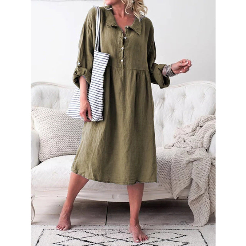 فستان ميدي على طراز الفستان مع طوق الانخفاض