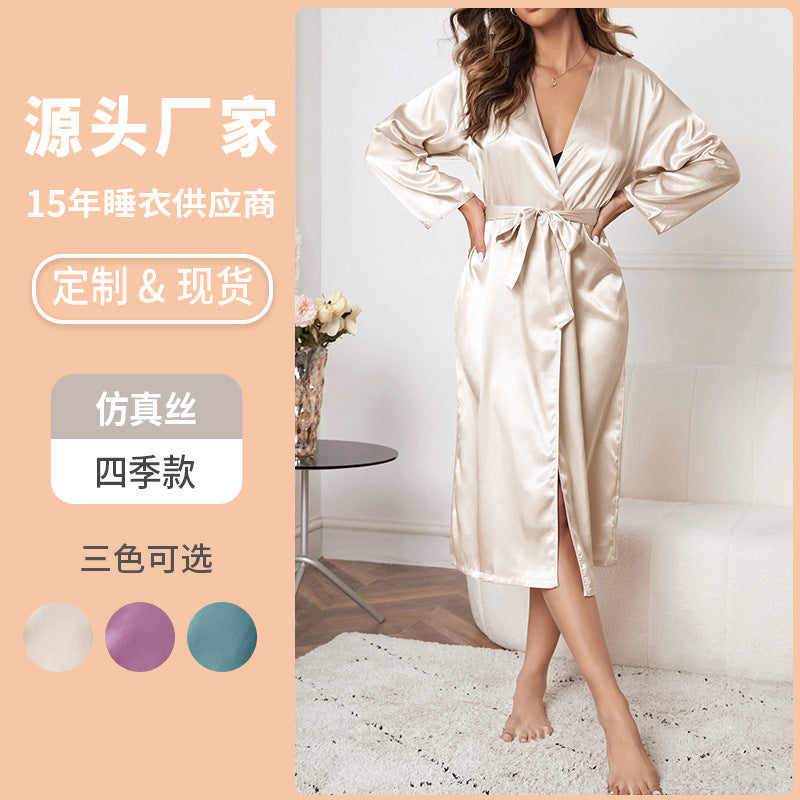 يعد رداء حرير الخصر الطويل Maxi Long Maxi مع رقبة V هو وسيلة مغرية للتستر أثناء الاسترخاء في المنزل. إنه يأتي في اختيارك لأربعة ألوان لامع.