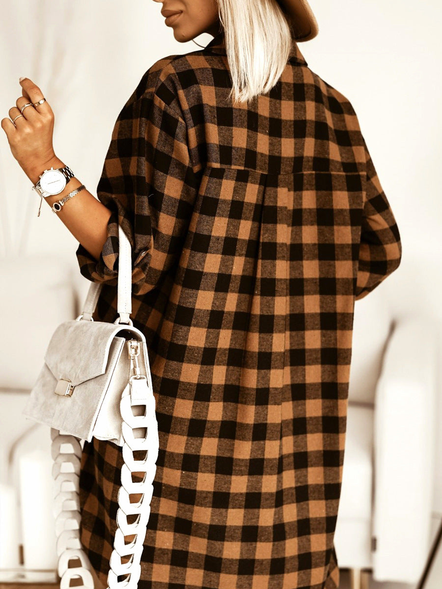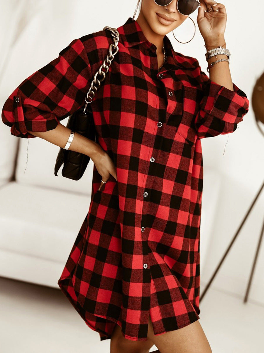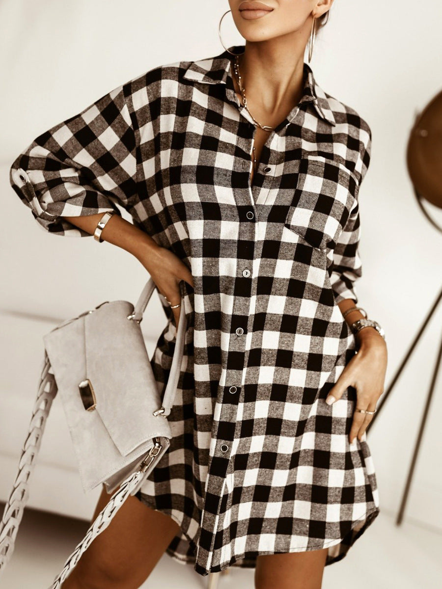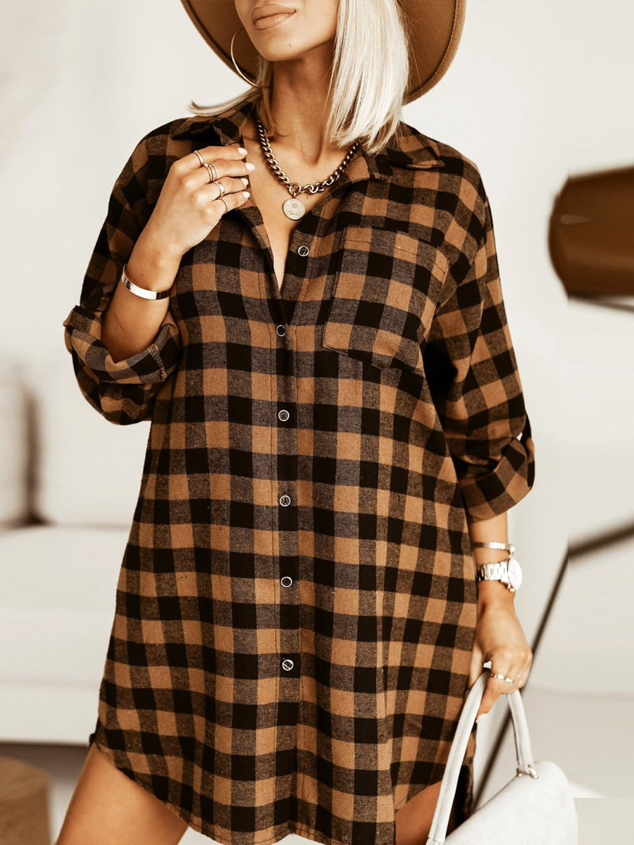 فستان الفانيلا المصغر مع الأزرار والأكمام الطويلة