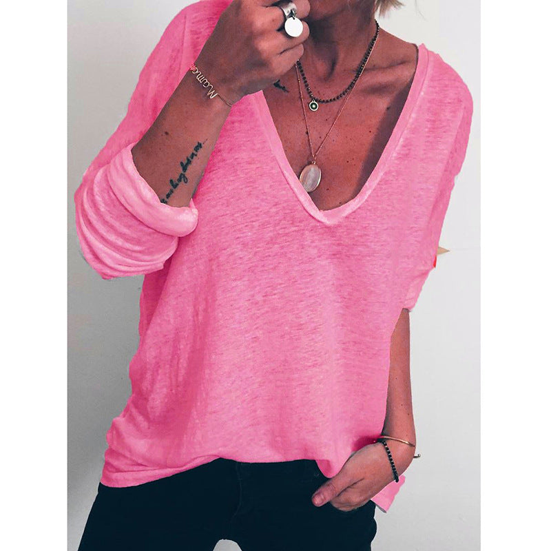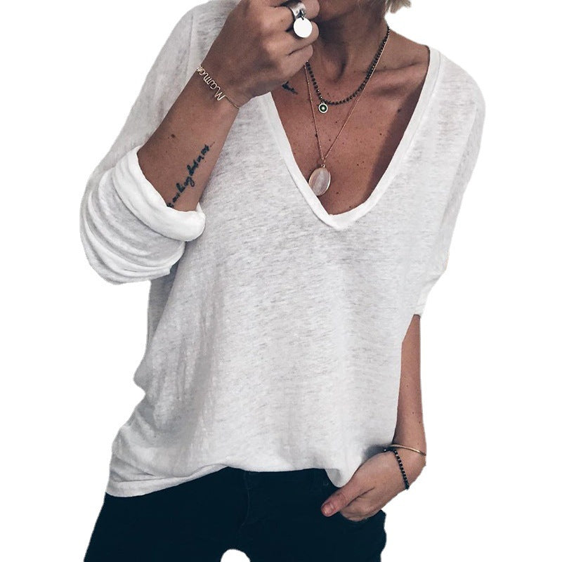 تي شيرت U-ucived ذات الأكمام الطويلة مع نسيج خفيف الوزن