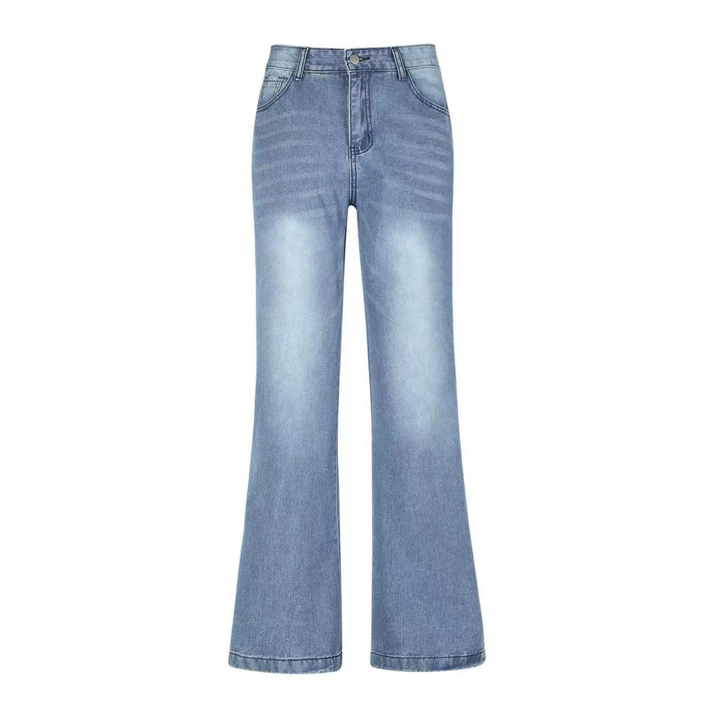 Women Wide Legged Loose Fitting Jeans with Pockets