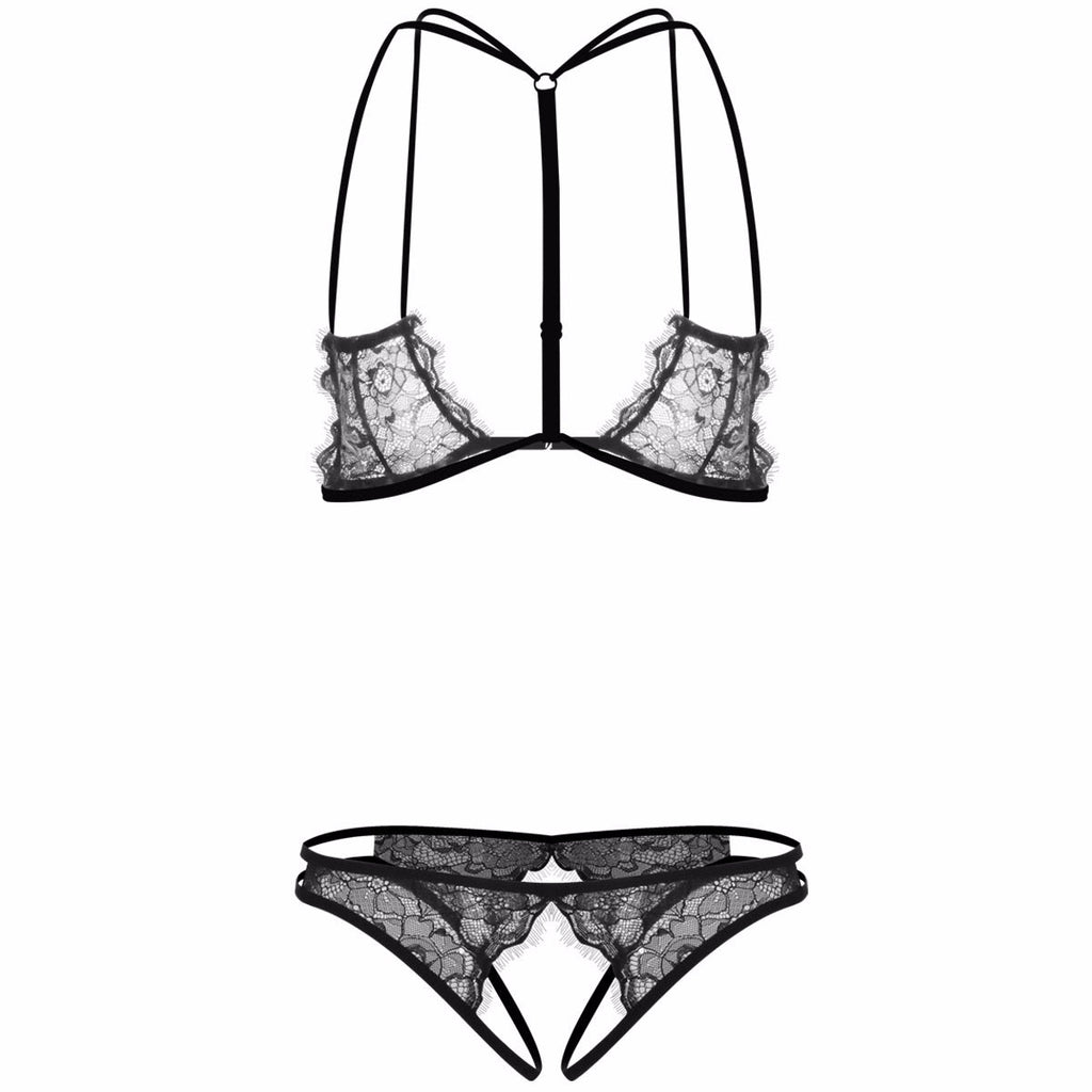 Betonen Sie die Konturen Ihrer Kurven mit dem Cage Strap Crotchless Panty and Bra Set, das Ihre Brust, Hüften und Oberseiten Ihrer Oberschenkel umreißt.