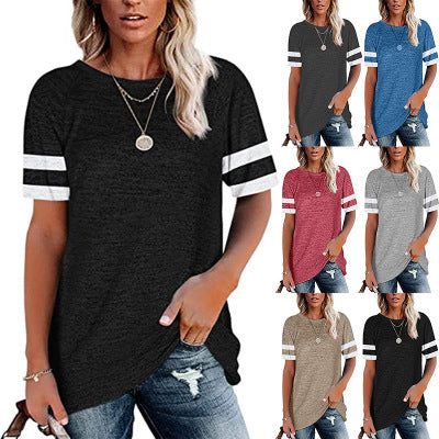 Sportlich und schick, dieses locker sitzende, kurzärmlige, gestreifte Damen-T-Shirt ist die perfekte Wahl für jeden lässigen Sommerausflug. Es ist aus weichen Materialien gefertigt und in mehreren Farben erhältlich.