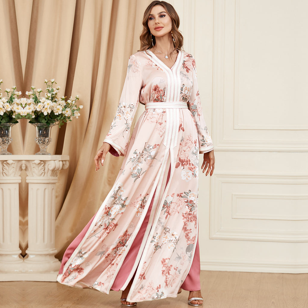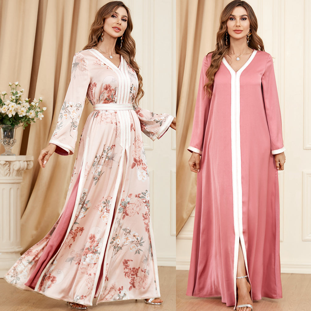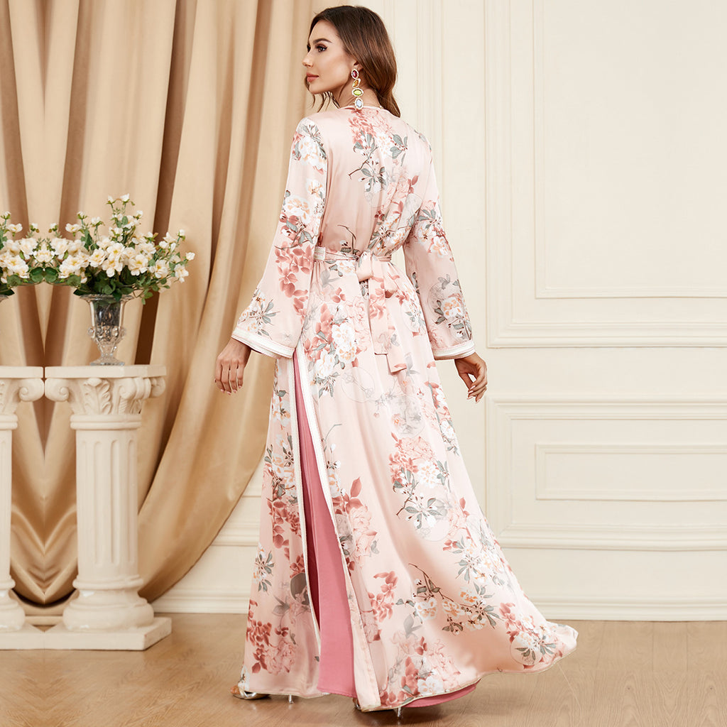 Delicate and feminine, the Women's Long Sleeve Baby Pink Floral Print Maxi Dress can be reversed and worn more than one way, providing you with the ultimate versatility.