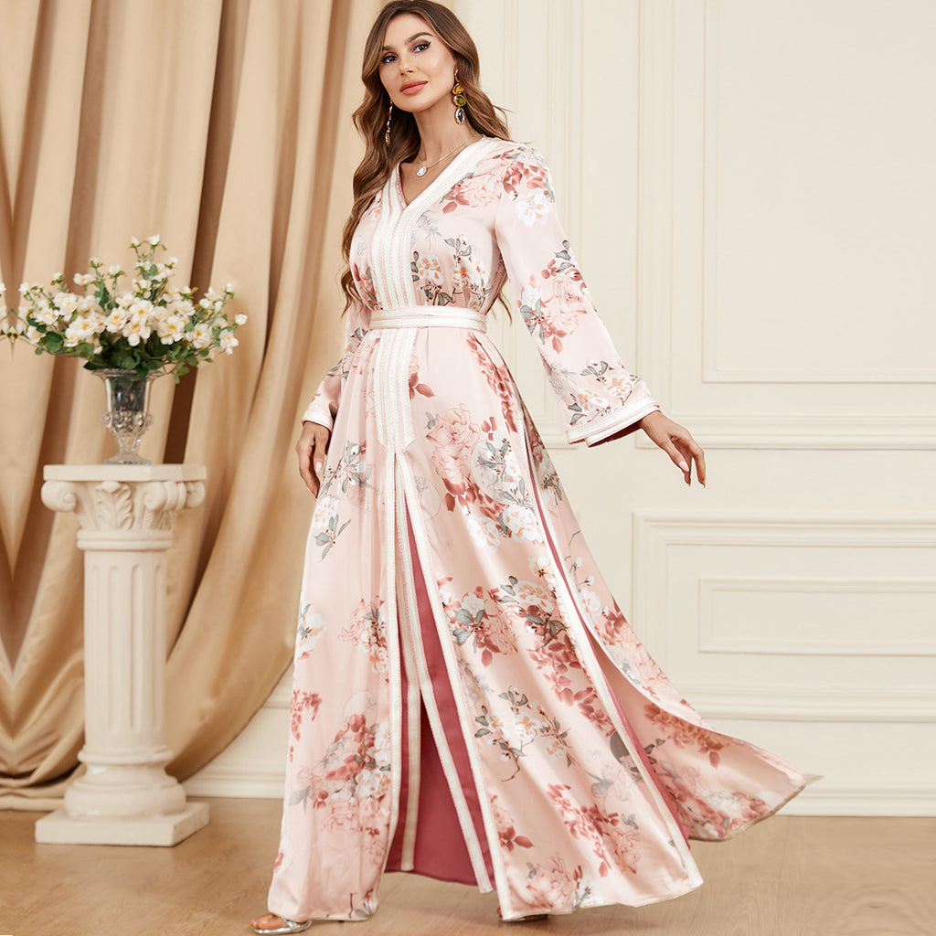 Women's Long Sleeve Baby Pink Floral Print Maxi Dress