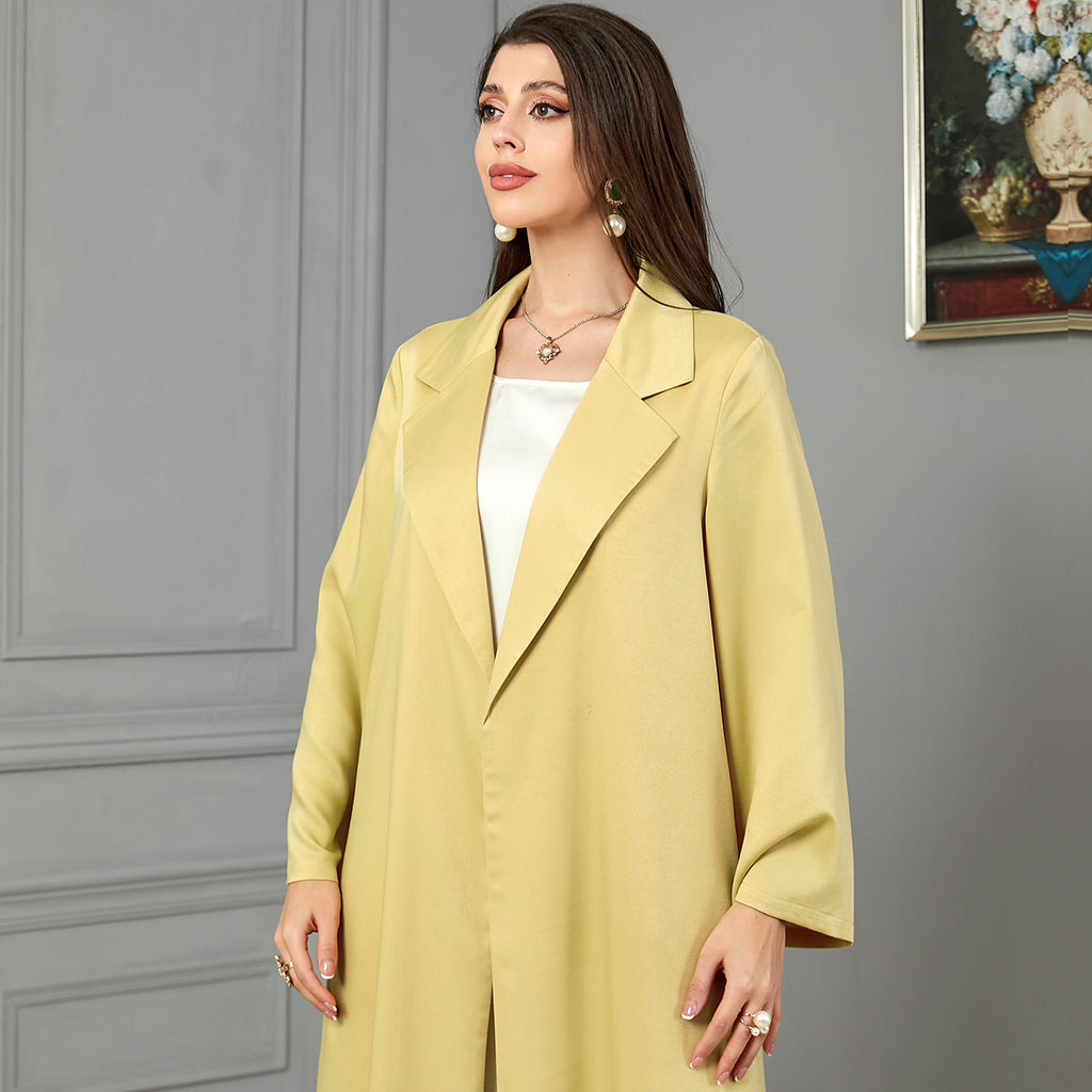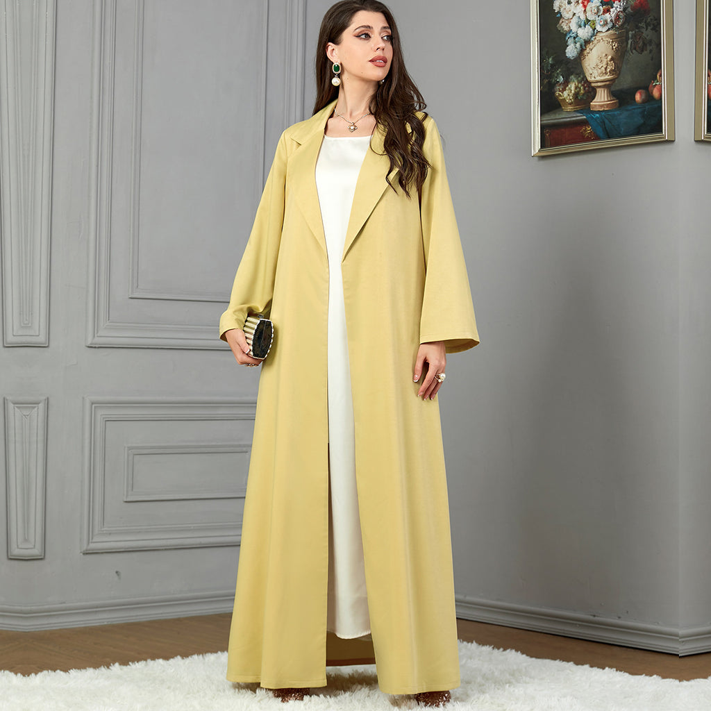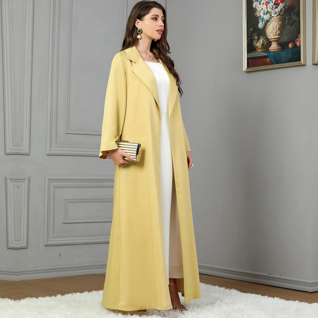 Put a stylish twist on traditional outerwear with the Women's Long Sleeve Trench Coat Style Dress that has a neutral beige color ideal for accessorizing.