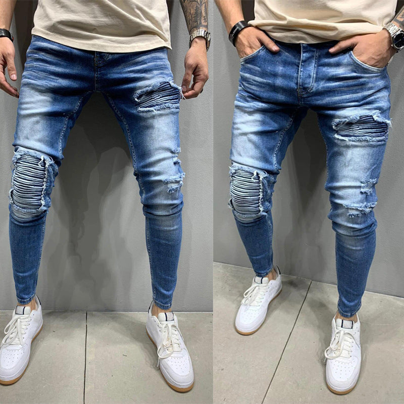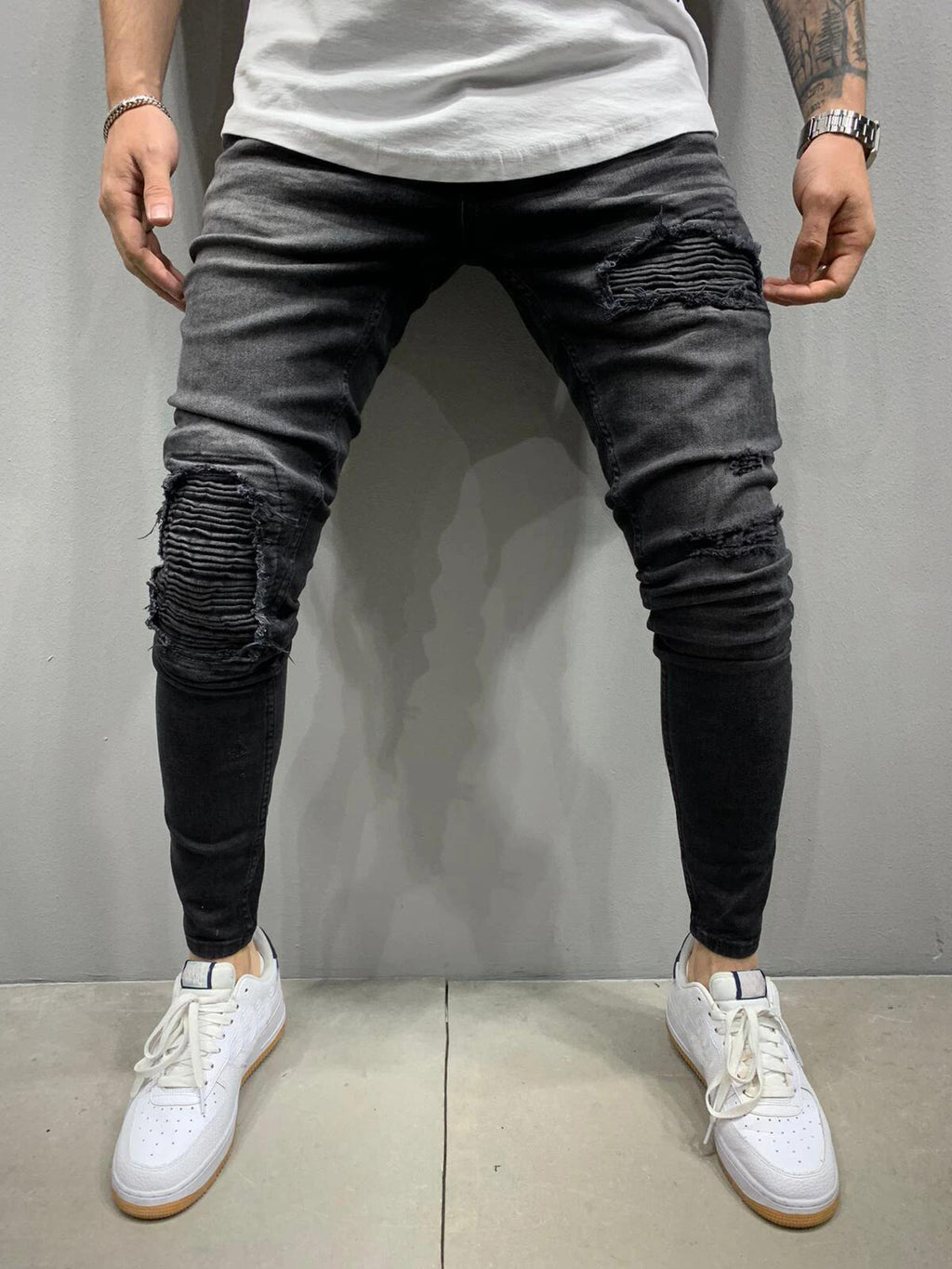 Jeans ajustados de hombre con rodillas y muslos rasgados