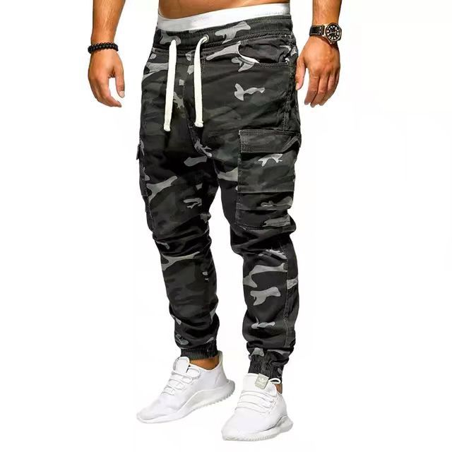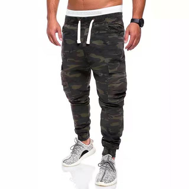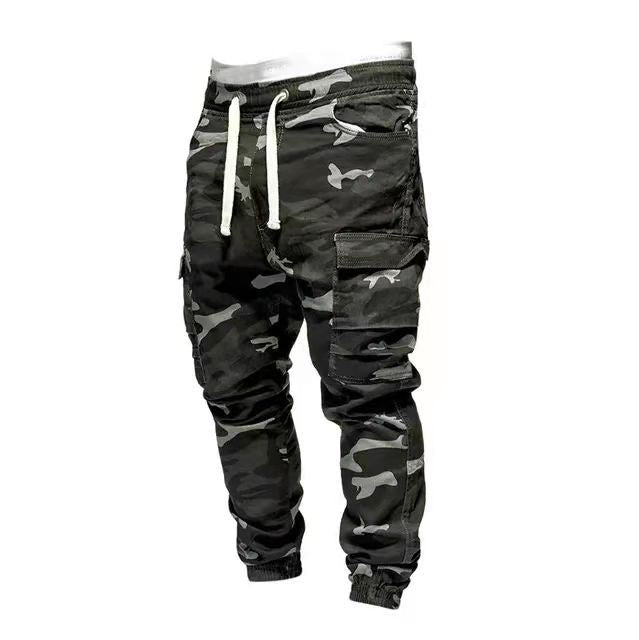 Pantalones de pierna recta de camuflaje para hombre con cordón