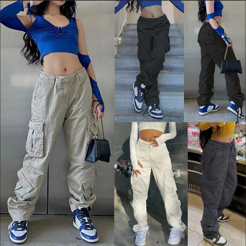 Women’s Loose Fitting Long Cargo Pants with High Waist