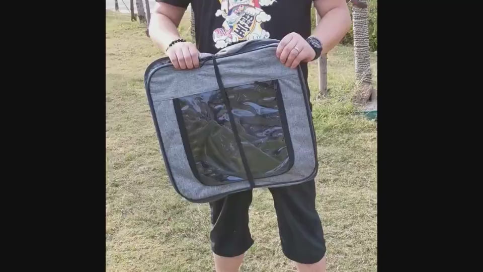 Travel with confidence using this folding fabric pet carrier. Lightweight yet durable, it features locking safety zippers and breathable panels for comfort. Perfect for cats and small dogs, it folds flat for easy storage and is ideal for trips, vet visits, or daily outings.