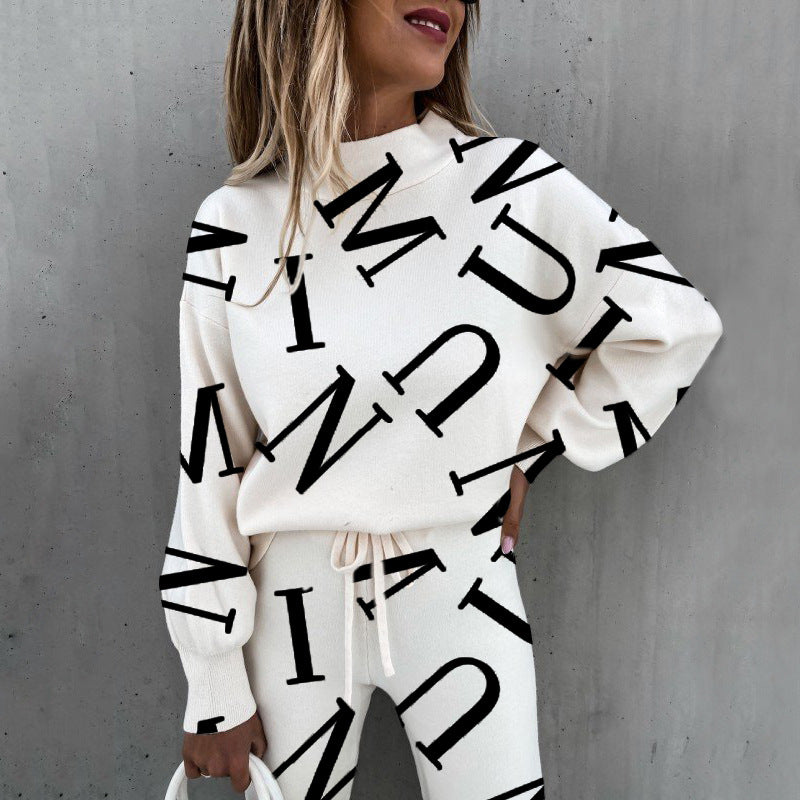 Obtenez l'apparence des vêtements de créateurs avec le logo de créateurs de femmes de la chemise à manches longues en deux pièces et un ensemble de pantalons qui dispose d'un matériau ajusté et d'une taille élastique avec un cordon pour assurer l'ajustement parfait.