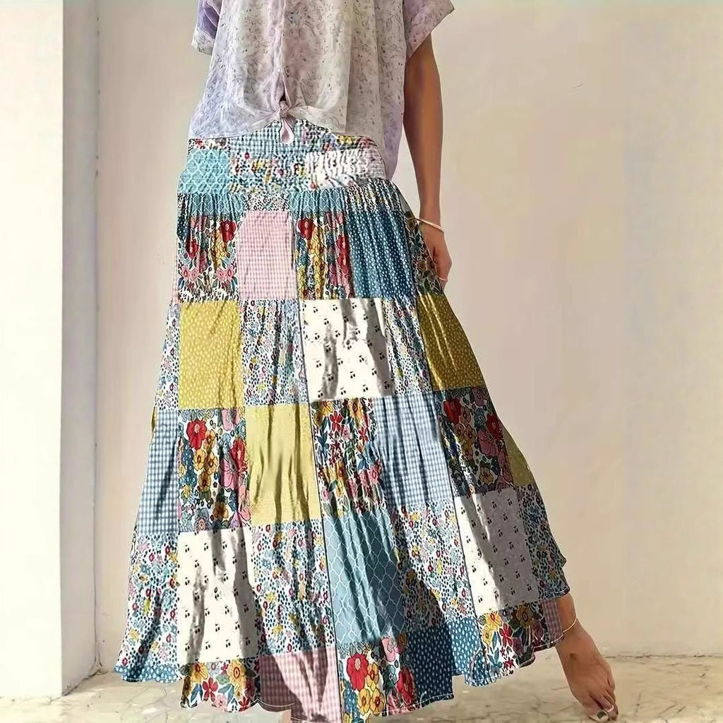 Cousage imprimé jupe longue florale pour vêtements de tous les jours populaires