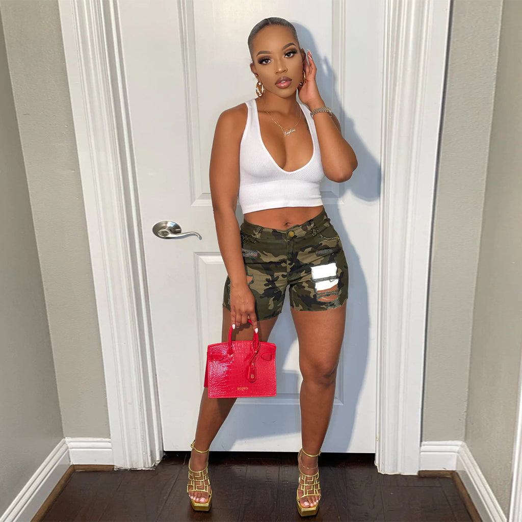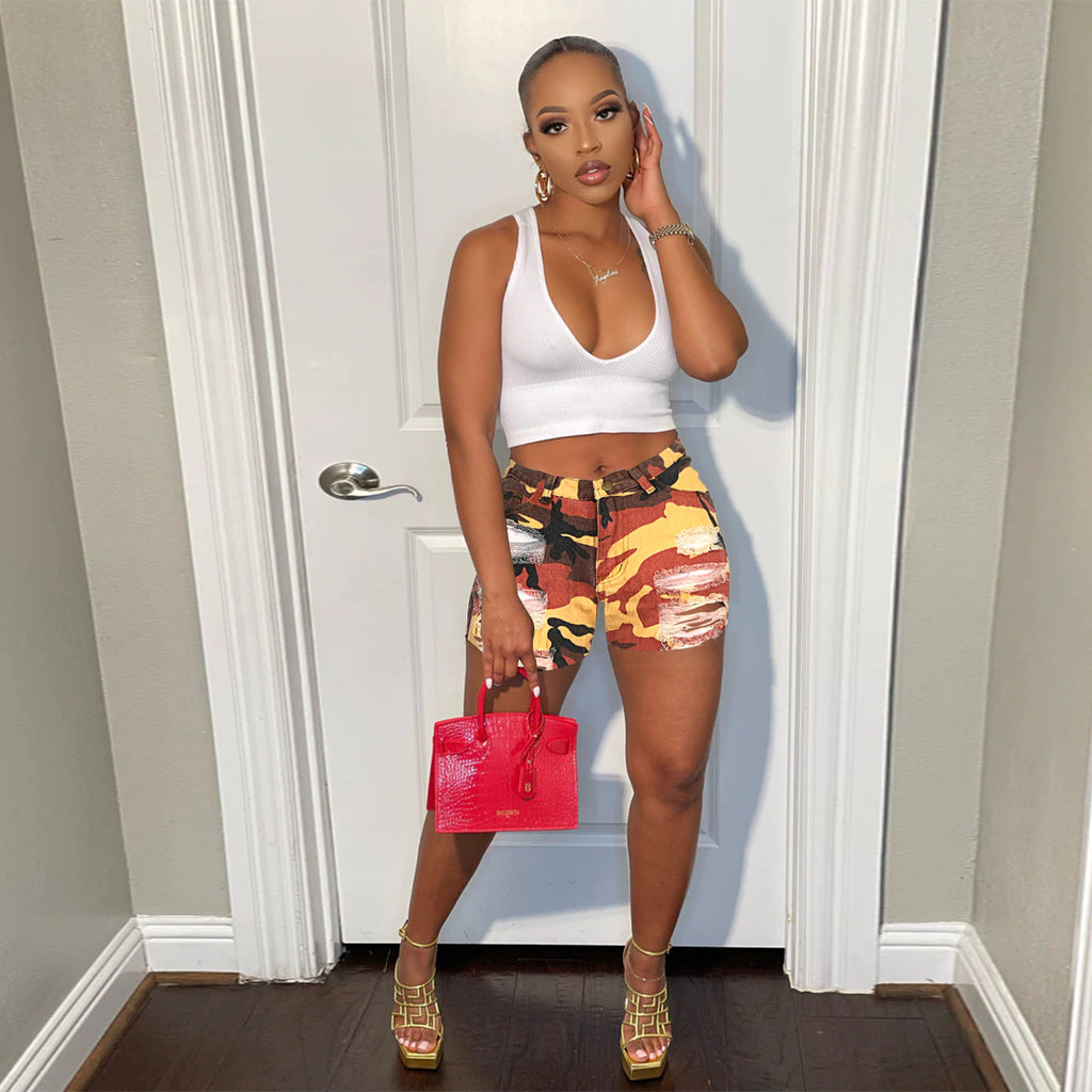 Tournez les têtes avec le camouflage lorsque vous portez le short à la taille haute des femmes en camouflage. Ils sont disponibles dans les couleurs du coucher du soleil, le camouflage classique et le camouflage rose pour vous.