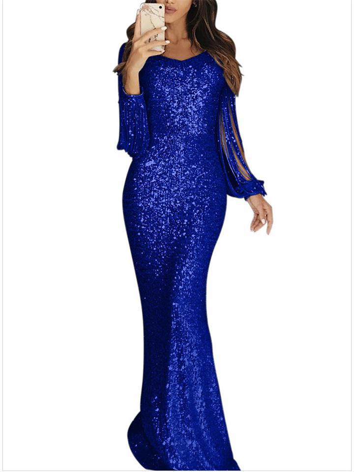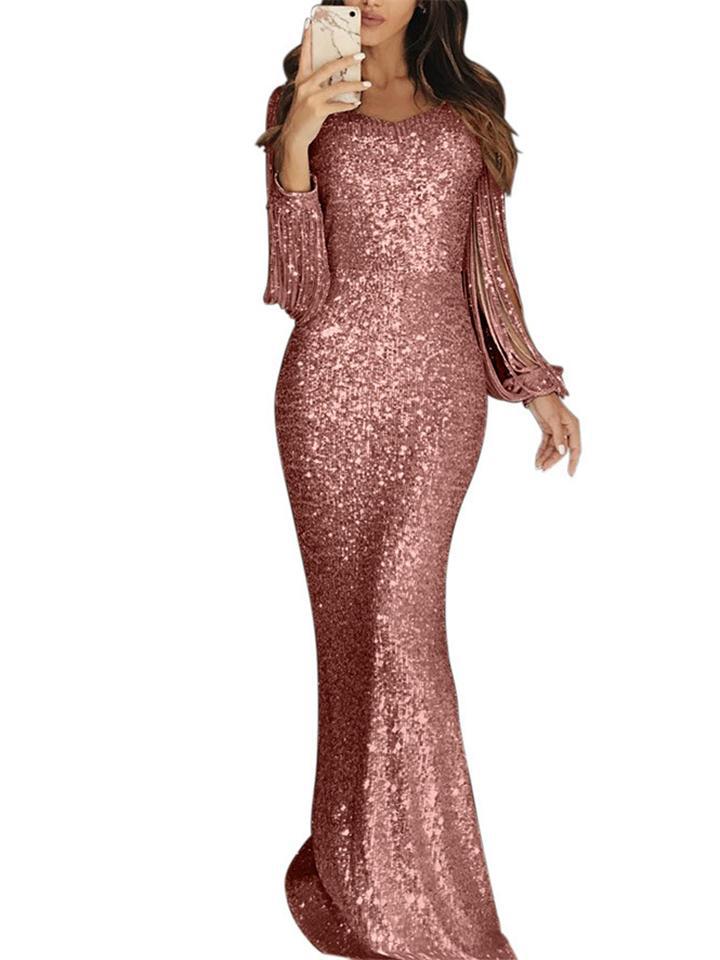 किसी भी औपचारिक अवसर के लिए सुरुचिपूर्ण और रीगल देखो महिलाओं के रूप में फिटिंग चमकदार पुरानी हॉलीवुड पोशाक के साथ मेष आस्तीन के साथ। यह आपको एक चापलूसी सिल्हूट देने के लिए आपके घटता को गले लगाता है और अद्वितीय सरासर आस्तीन है।