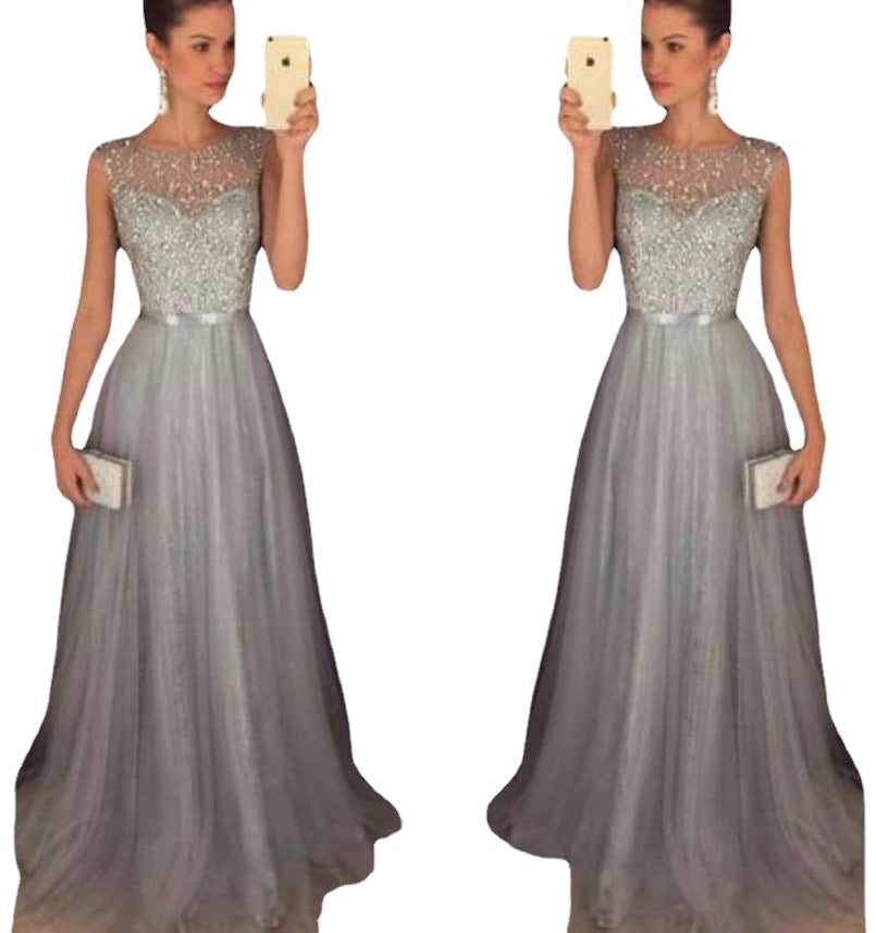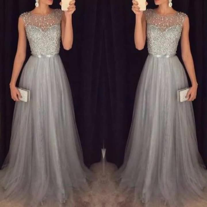 सरासर चोली के साथ महिलाओं के जानेमन नेकलाइन मैक्सी ओम्ब्रे ग्रे ड्रेस पहने क्लासिक राजकुमारी लुक प्राप्त करें। इसमें चांदी के विवरण के डॉट्स के साथ एक जाल चोली है जो बाकी चापलूसी वाली पोशाक से मेल खाती है।