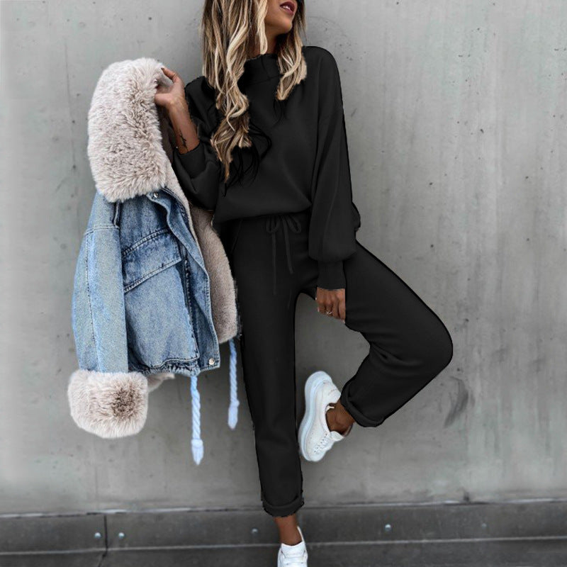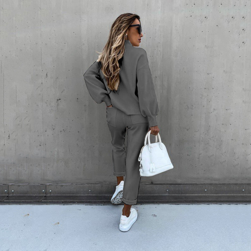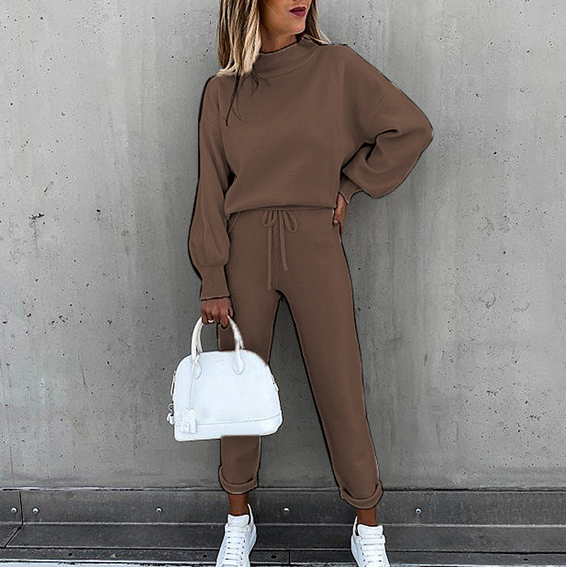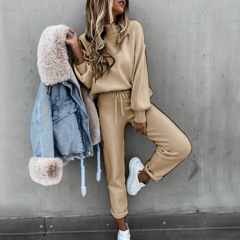 महिलाओं के दो टुकड़े स्वेटशर्ट और लोचदार कमर पैंट सेट के साथ, आप बाहर जा सकते हैं या आकस्मिक शैली में घर पर आराम कर सकते हैं। सेट गुलाबी के साथ -साथ तटस्थ ब्राउन, ग्रे, सफेद या काले रंग में उपलब्ध है।