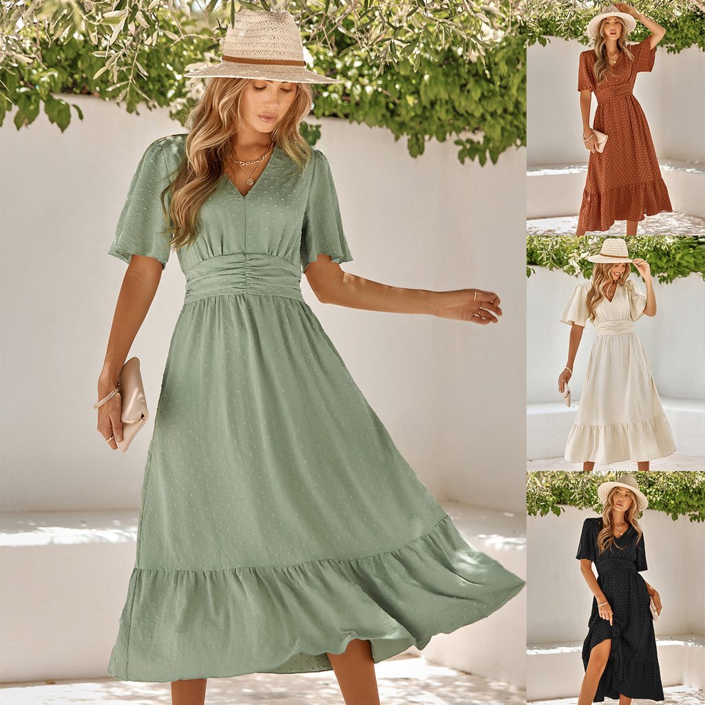 महिलाओं की रफ़ल हेम शॉर्ट स्लीव मिडी ड्रेस