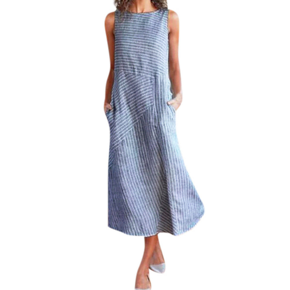 इस गर्मी में इसे सरल और आकस्मिक रखें, विभिन्न प्रकार के तटस्थ रंगों में उपलब्ध महिलाओं की धारीदार सूती ढीली फिटिंग ड्रेस पहने।