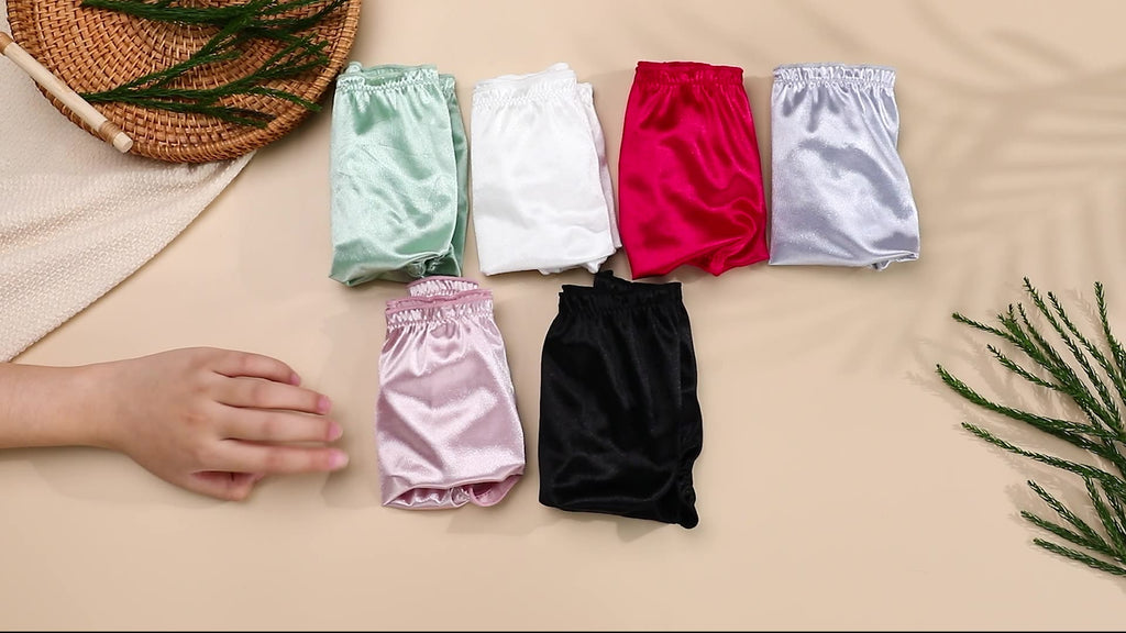 एक रेशमी सामग्री की विशेषता, ये साटन नरम स्ट्रेच कम वृद्धि महिलाओं के अंडरवियर त्वचा पर चिकनी महसूस करते हैं। वे एक आरामदायक लोचदार कमर की सुविधा देते हैं और चुनने के लिए विभिन्न गहना-टोंड रंगों में आते हैं।