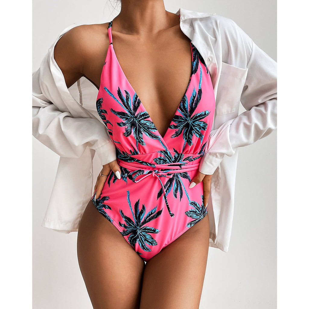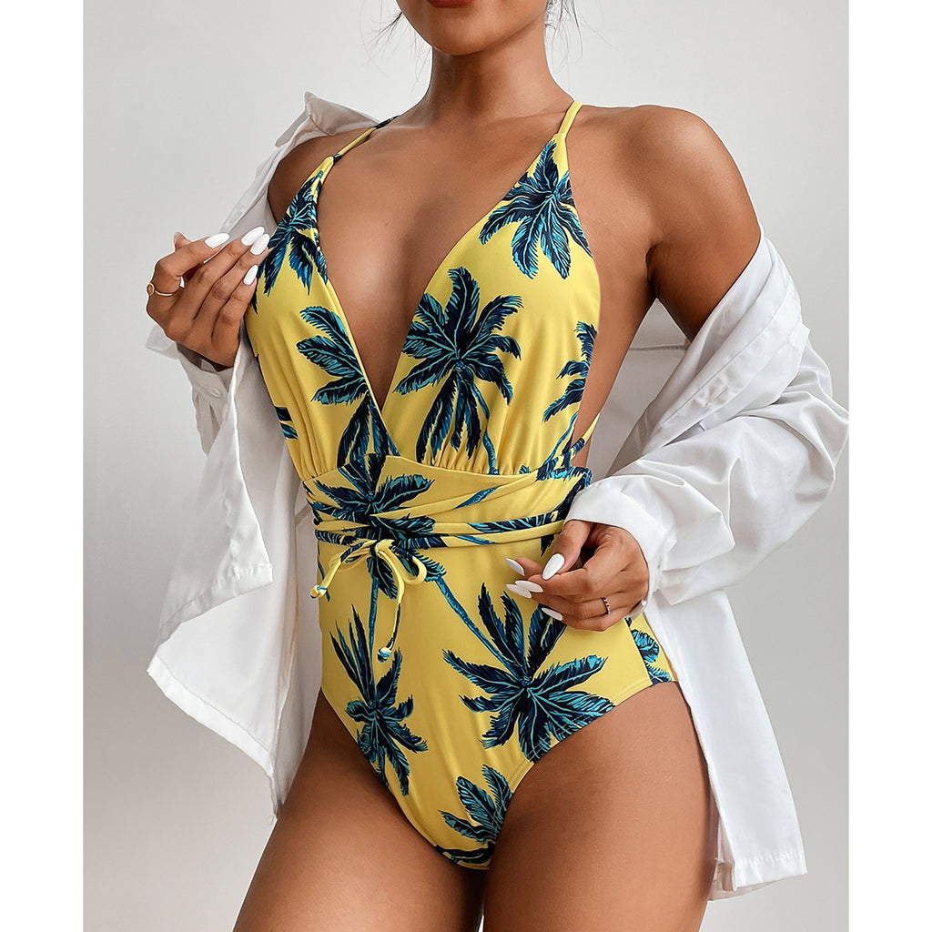 एक टुकड़ा उष्णकटिबंधीय पेड़ वी-गर्दन स्विमिंग सूट