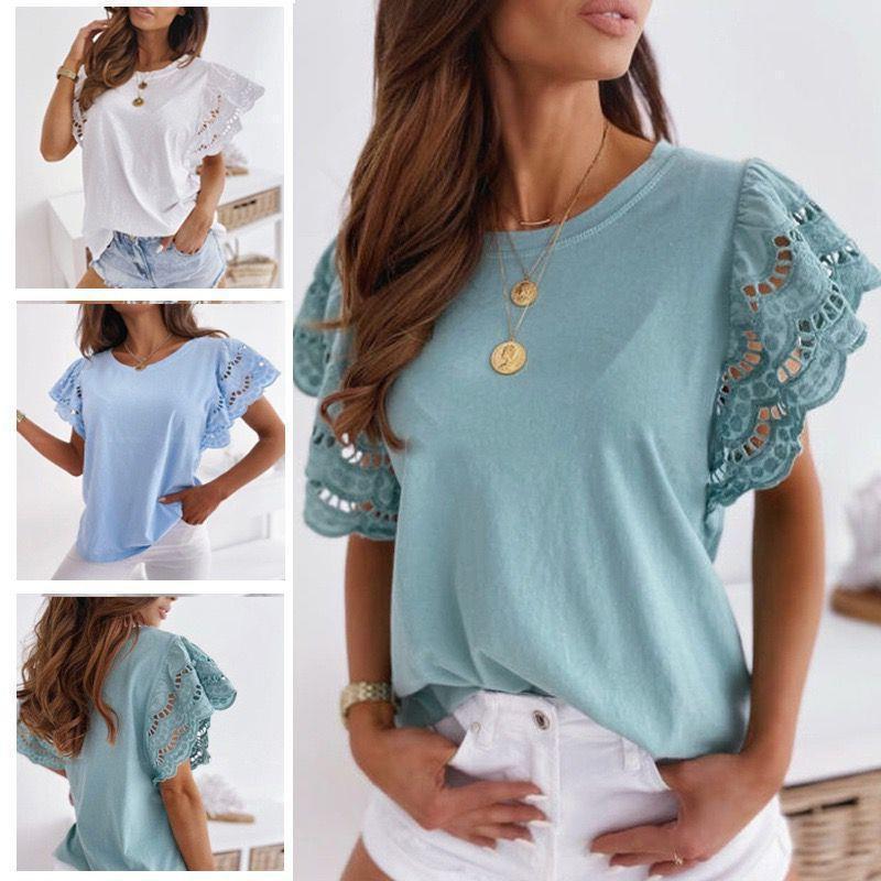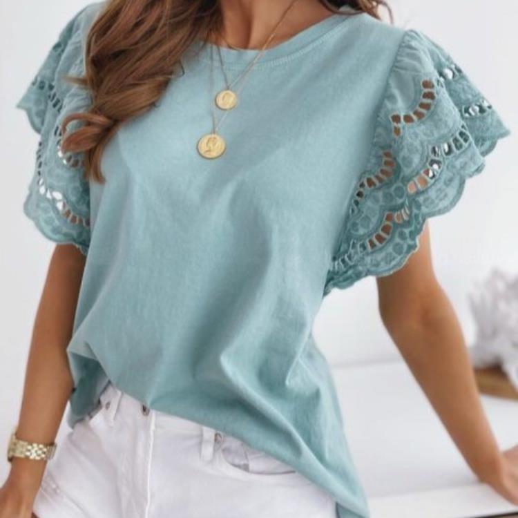 लघु आस्तीन लैसी ओ-नेक टीशर्ट