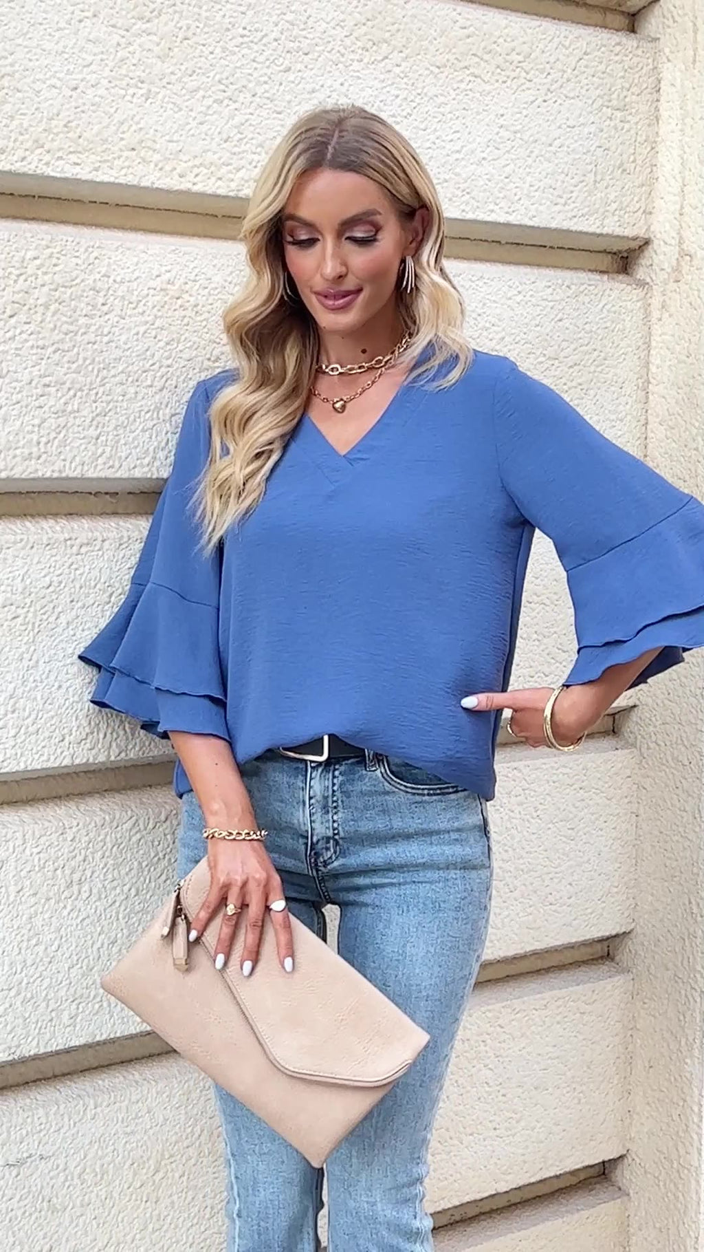 Terlihat terbaik dalam situasi bisnis santai atau kasual Anda dengan blus sutra longgar wanita dengan lengan lonceng. Blus lembut ini hadir dalam tiga warna pilihan Anda.
