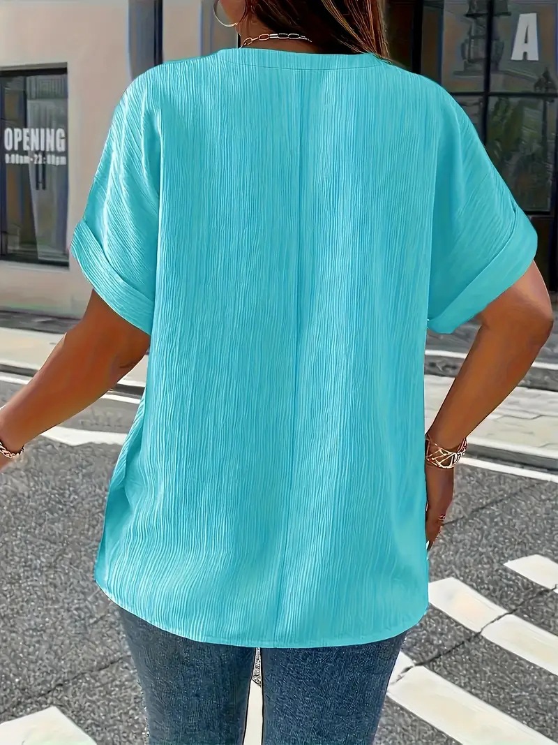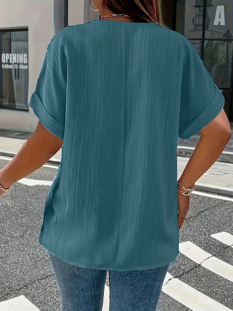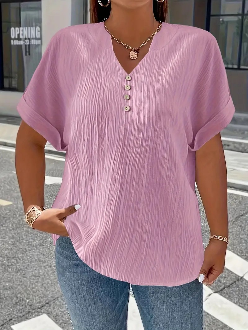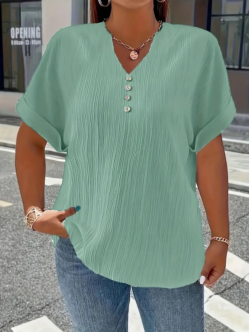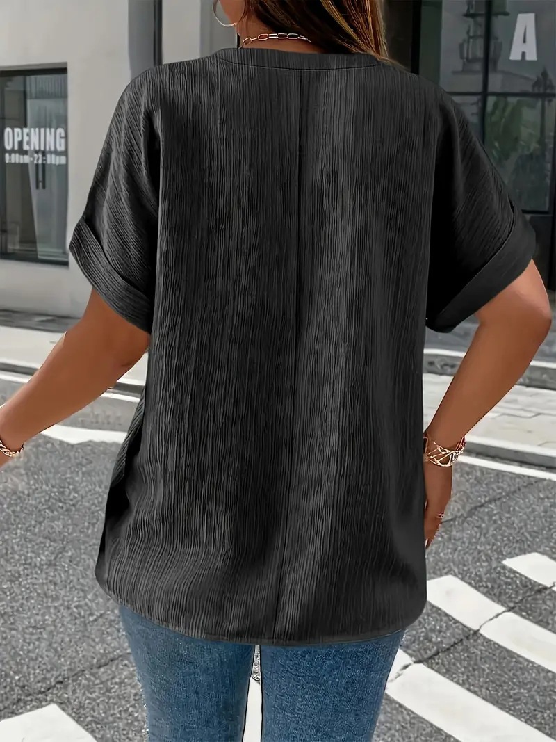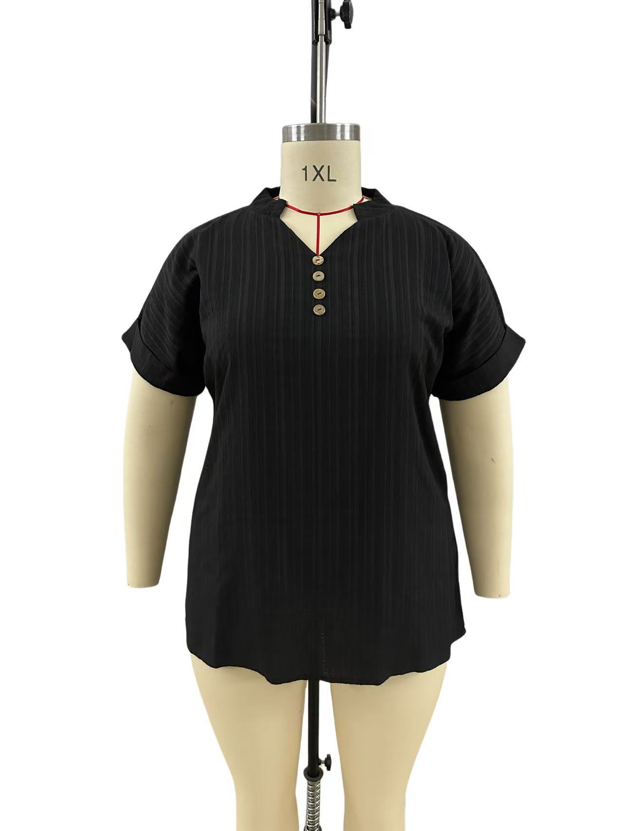 Summer Casual Women's Clothing Small V-neck Short-sleeve Top