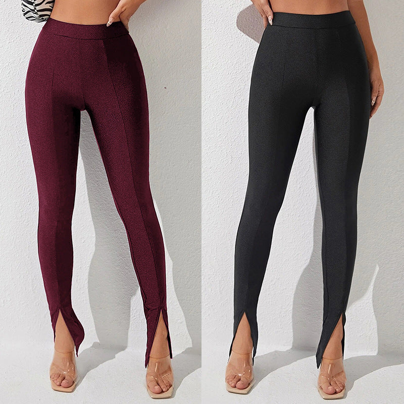 Put a modern spin on traditional leggings with the Women's High Waist Ankle Length Leggings with Cutout. The front of these leggings features a triangular slit by the ankles for a one of a kind look.