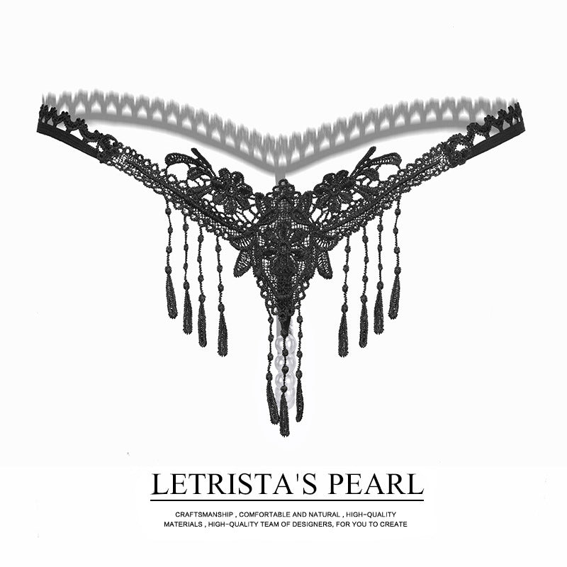 Attira l'attenzione del tuo amante in queste mutande per il perizoma trasparente in pizzo e nappe che presentano dettagli ricamati sulla parte anteriore e le nappe sottili che pendono.