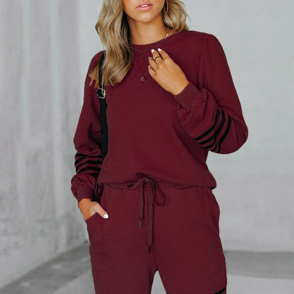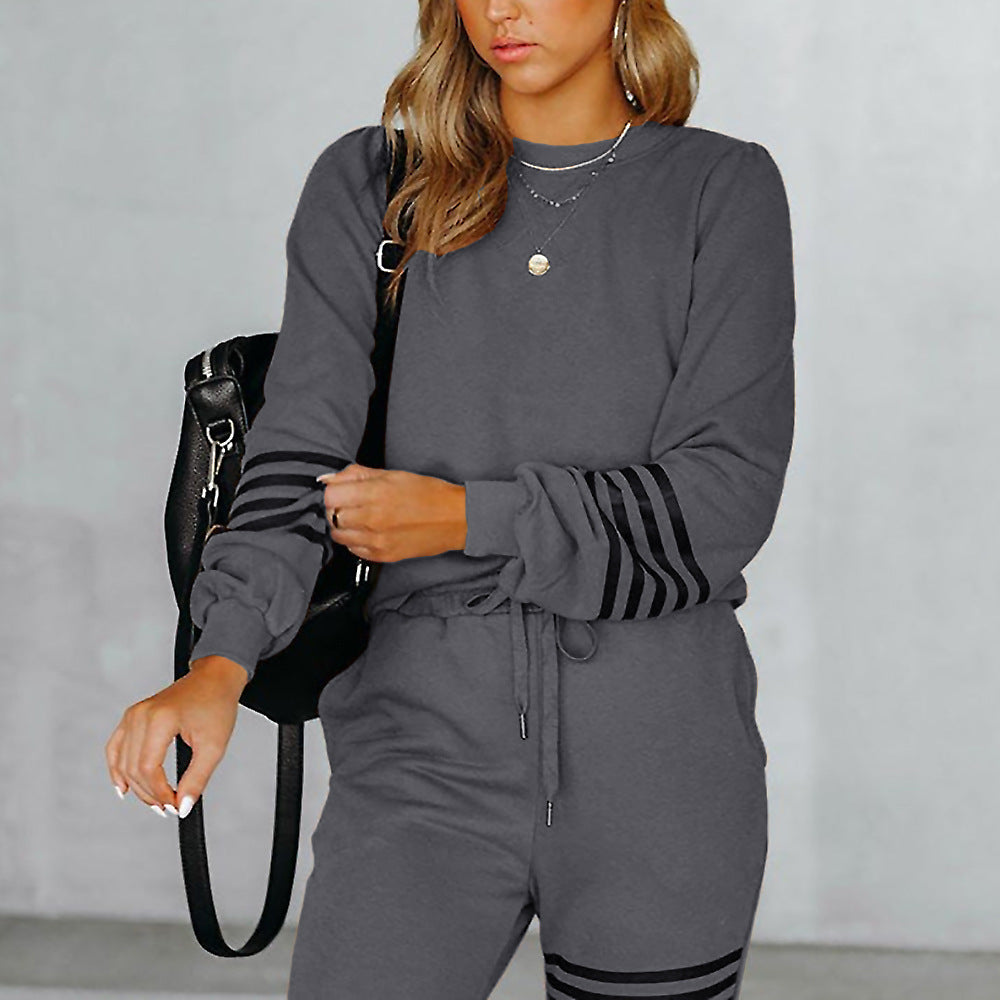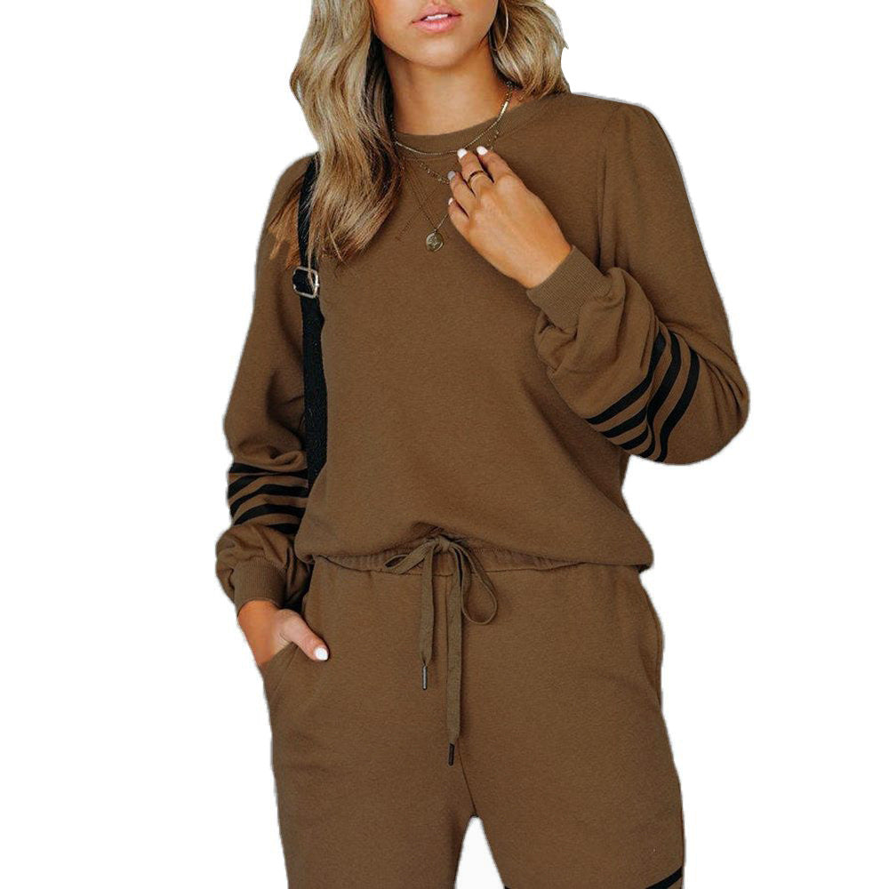 Tieniti a tuo agio a rilassarsi a casa o mentre fai commissioni con questa versatile manica lunga da donna e pantaloni messi con la vita. Questo set è allentato e elastico, rendendo facile muoversi.