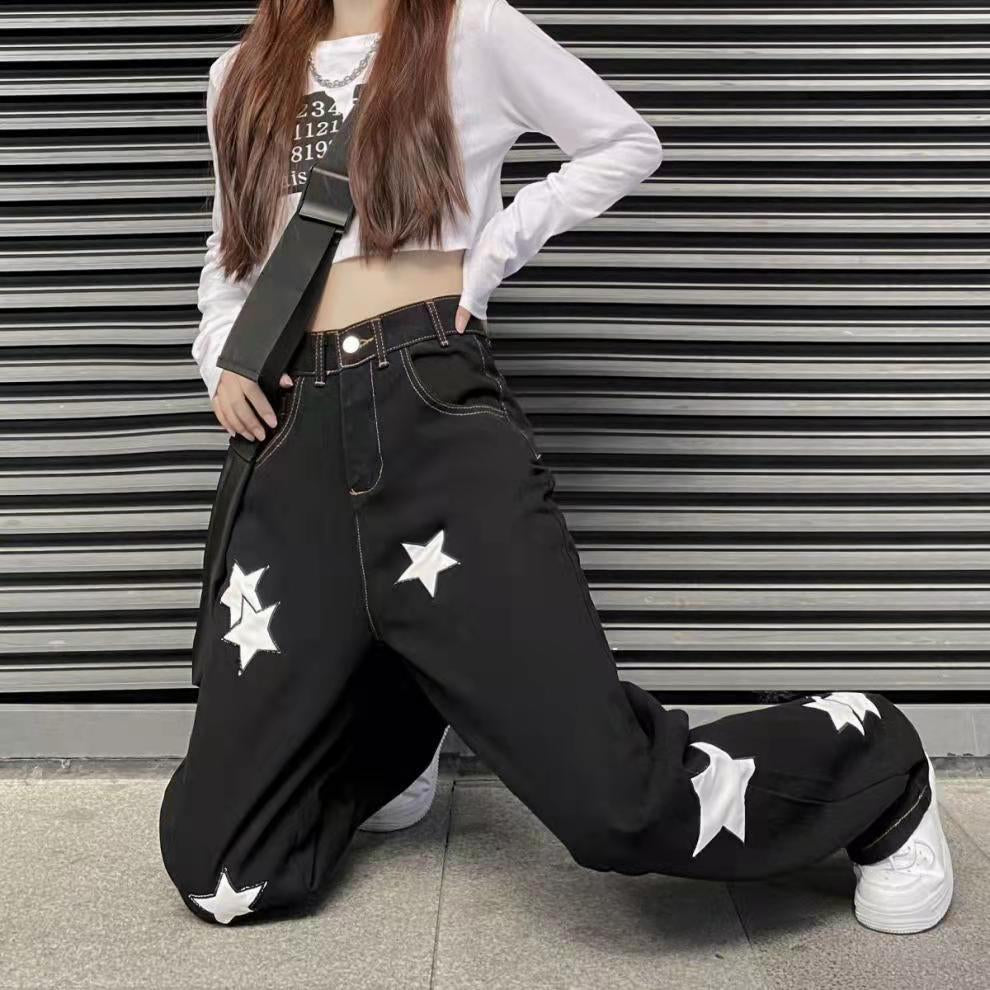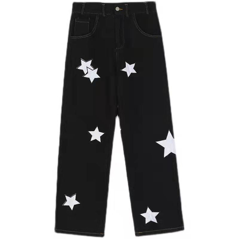 Women’s Baggy Straight Leg Pants with White Star Patches