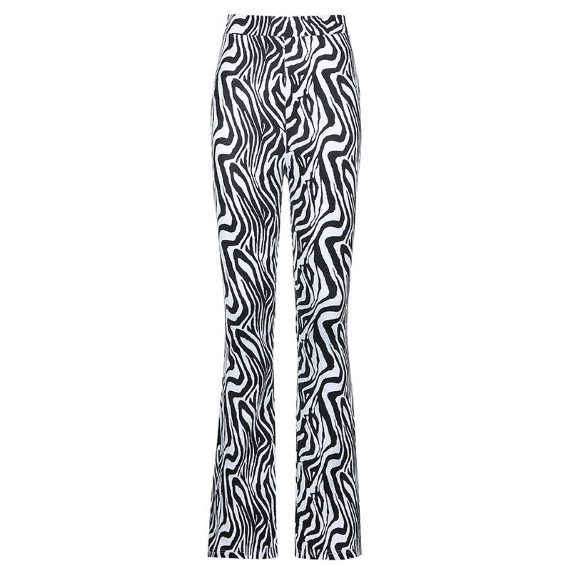 Take a walk on the wild side wearing the Women's High Waist Black and White Zebra Print Pants featuring a retro-inspired flare bottom and a soft material composition.