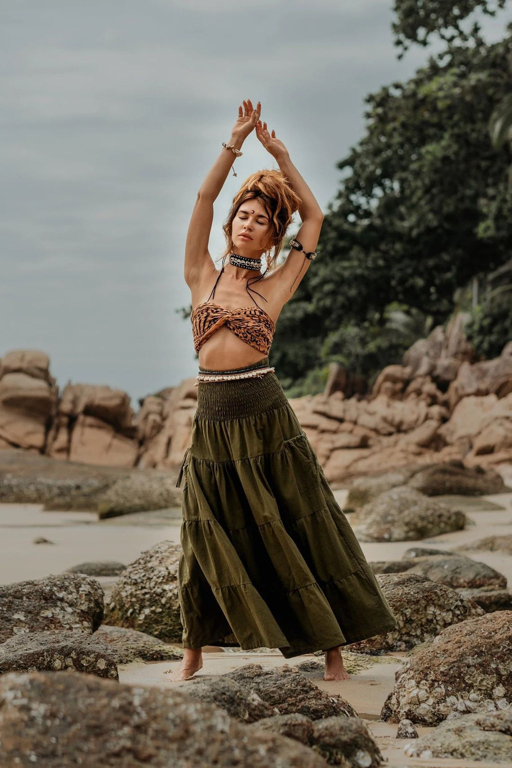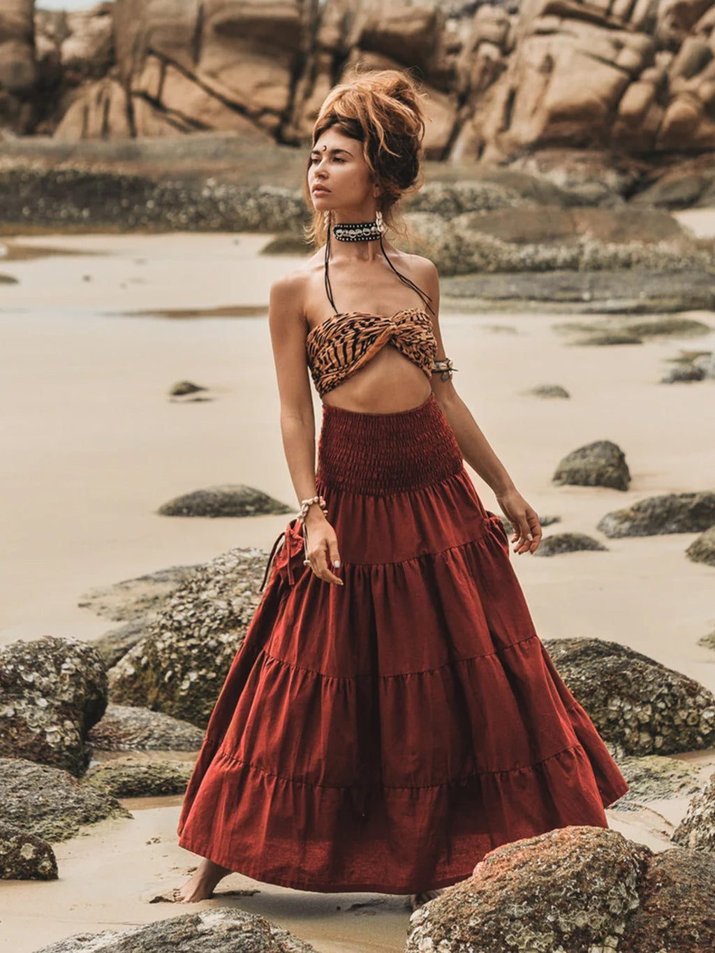 ボヘミアンカットでこのゆるい堅いスカートで楽なスタイルをお楽しみください。軽量で流れるように、ビーチの日、旅行、または自由な雰囲気のあるカジュアルウェアに最適です。
