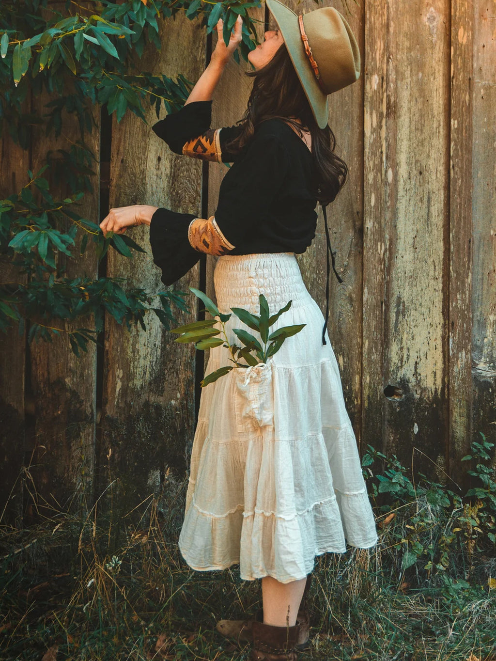 リラックスした日常の快適さのためのボヘミアンルーズソリッドスカート