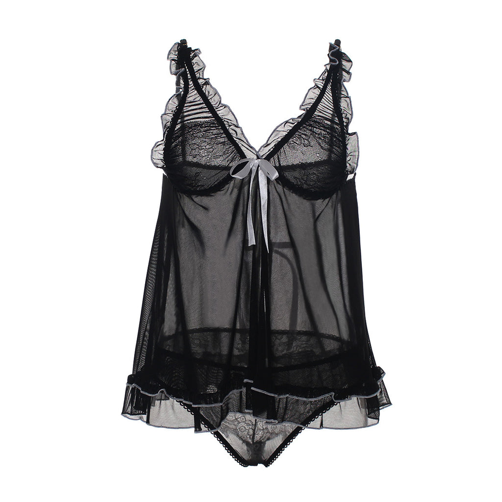 デザインのクラシックであるこの楽にセクシーな可dainなフリル裾のベビードールランジェリーセットは、あなたに目を向けた瞬間からあなたの恋人を気分にさせます。