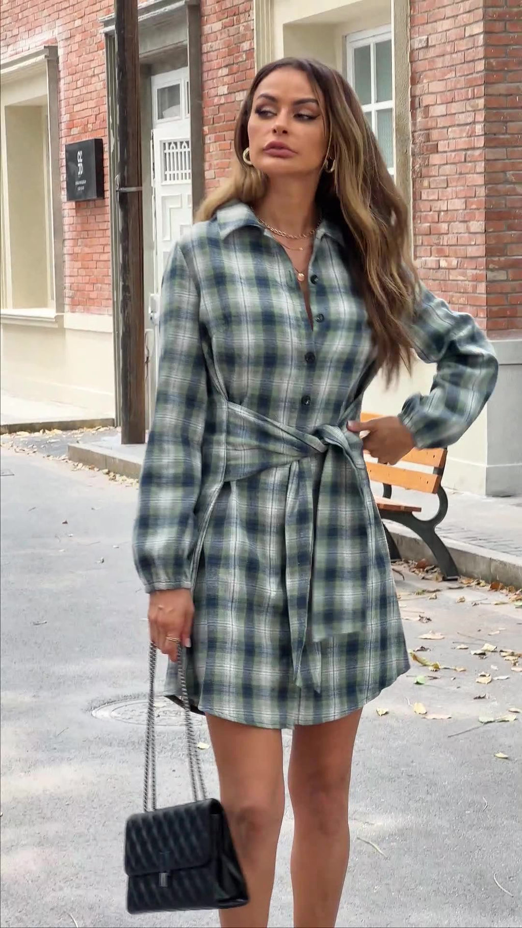 長袖の女性用フランネルボタンダウンミディドレスを備えたカジュアルドレスの形でフランネルシャツの外観を手に入れましょう。腰の周りにネクタイを備えて形状を与え、いくつかの色のオプションがあります。