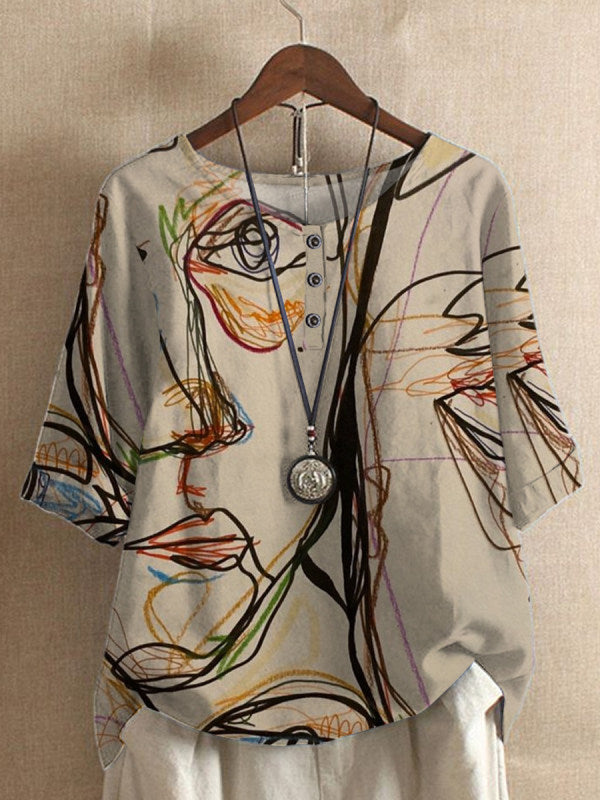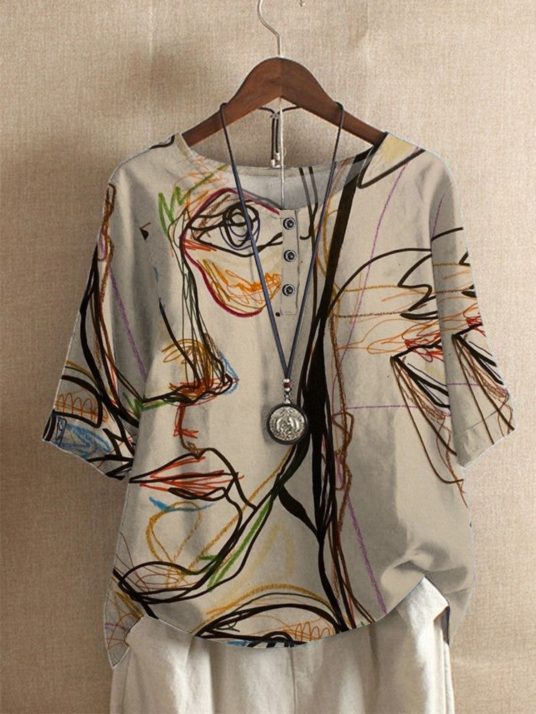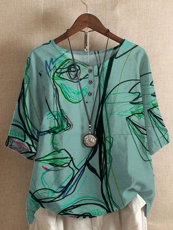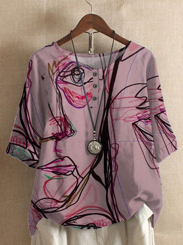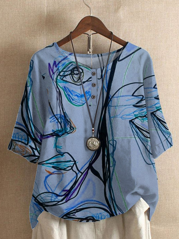 女性のゆるいウィステリアプリントカジュアルトップ