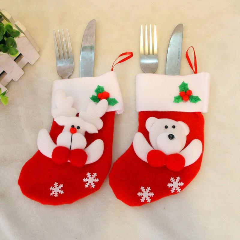 2 -stks beer en herten cadeau sokken mes en vorkzak kerstboom ornamenten