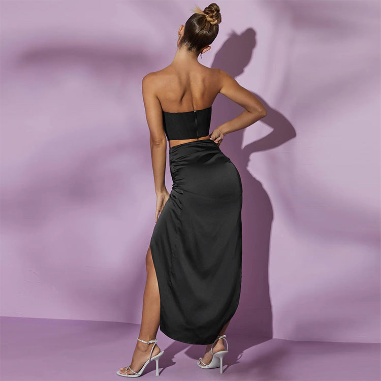 Draai de hoofden op de dansvloer met de tweedelige strapless top- en kokerrok jurk van de dames met kwastjes rond het middenrif en een diepe dijgleuf.