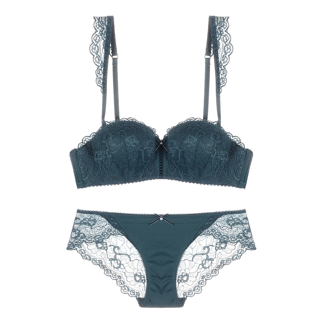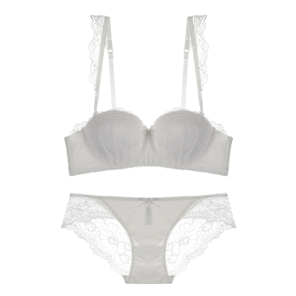 Geef je buste een kleine lift en accent de vorm van je dijen met respectievelijk de bh en panty in deze kanten band balconette bh en panty set.