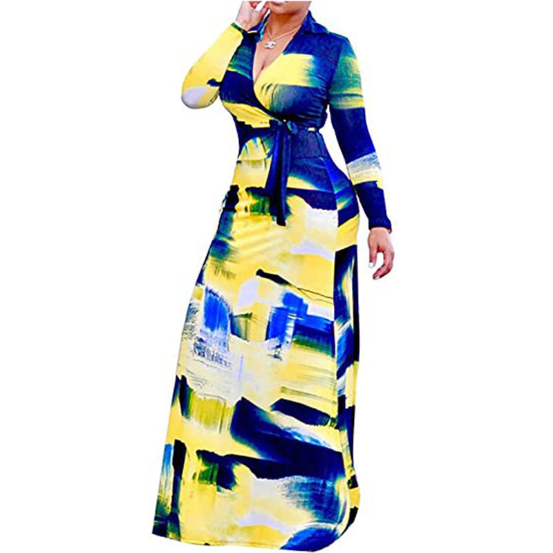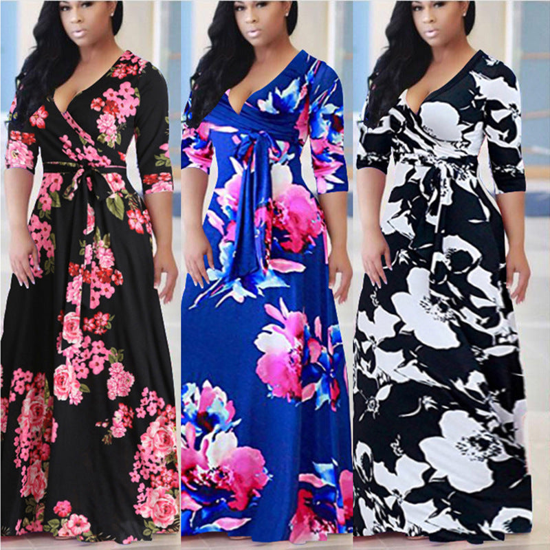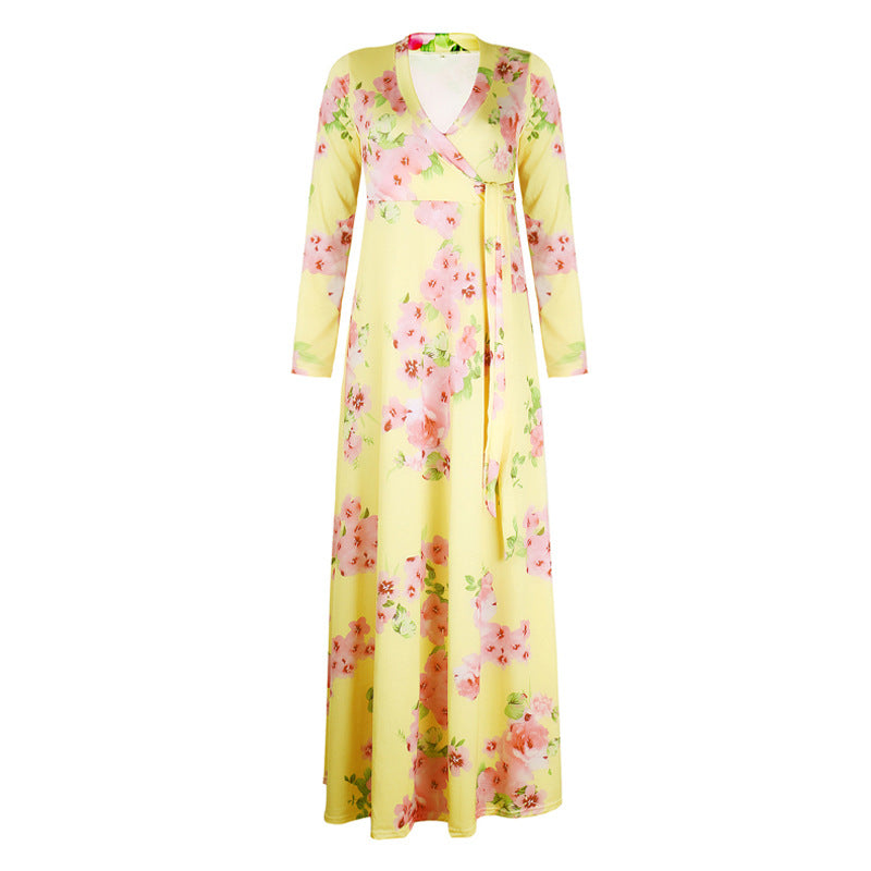 Maxi -jurk met lange mouwen met grote bloemenprint