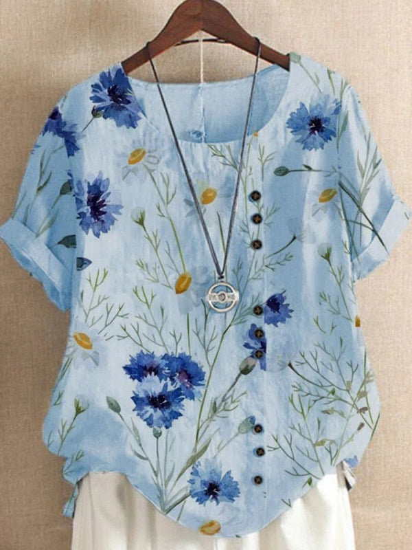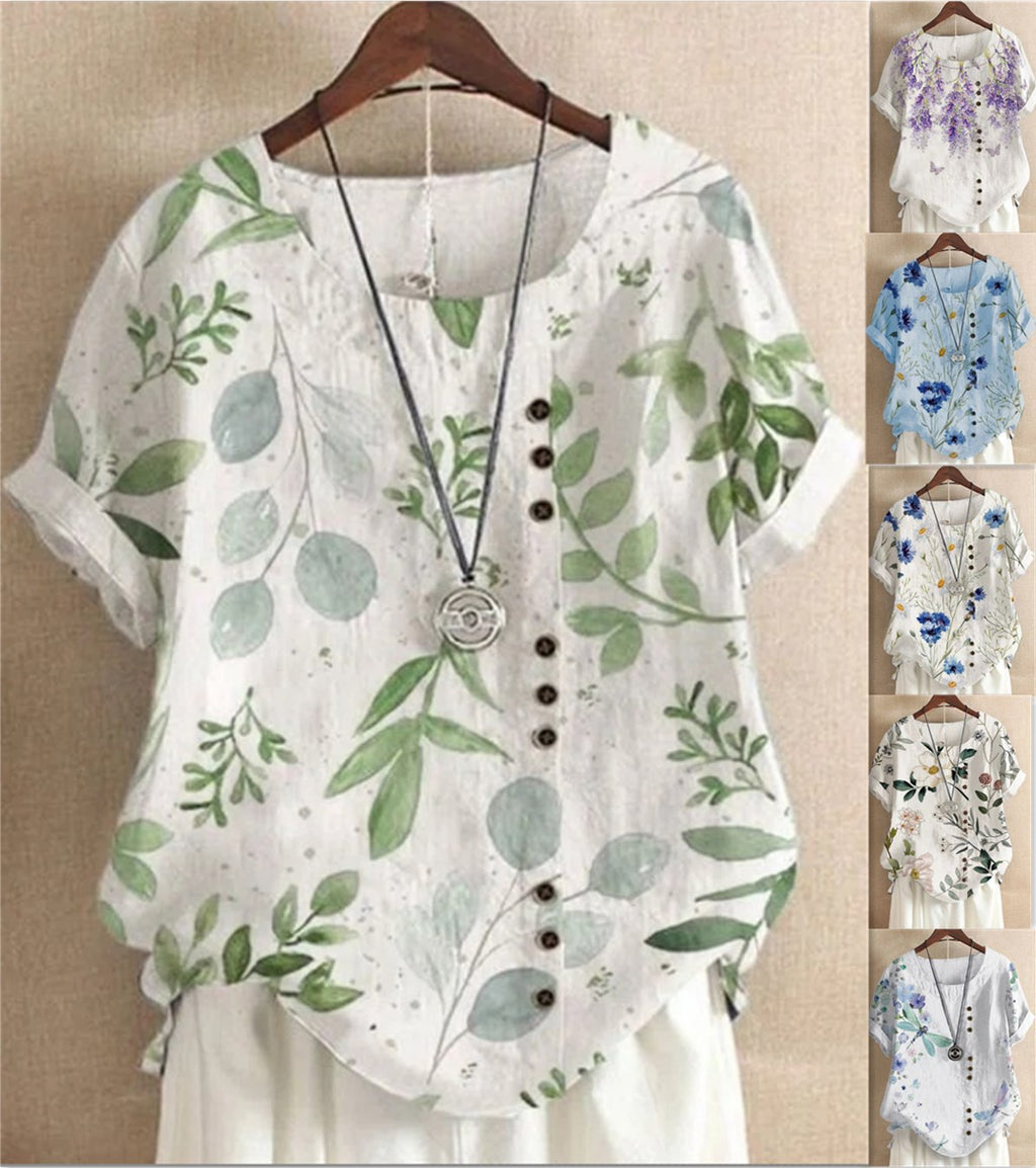Retro katoenen linnen afdrukken los casual shirt