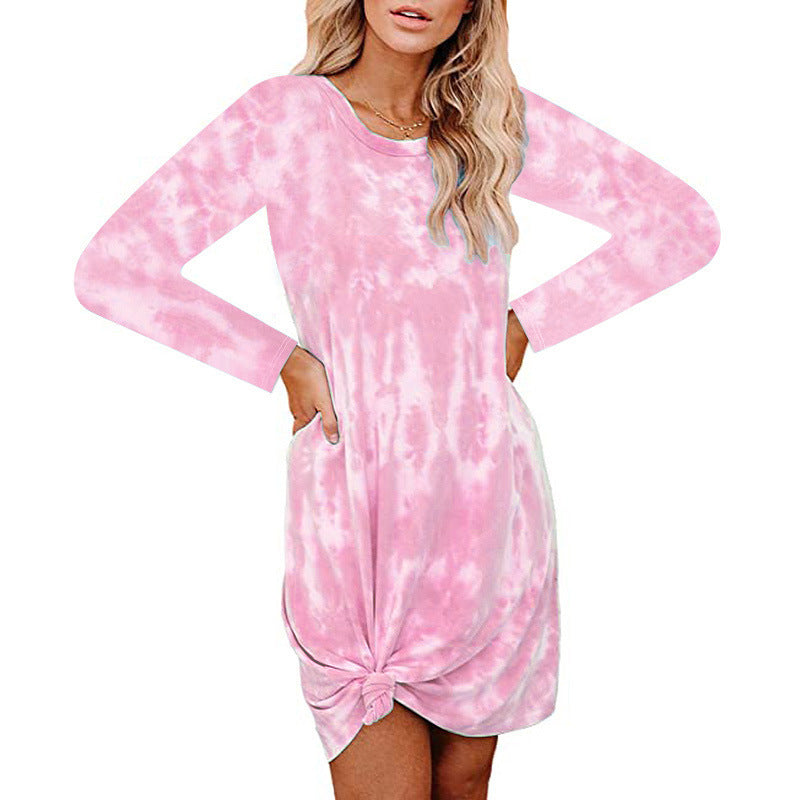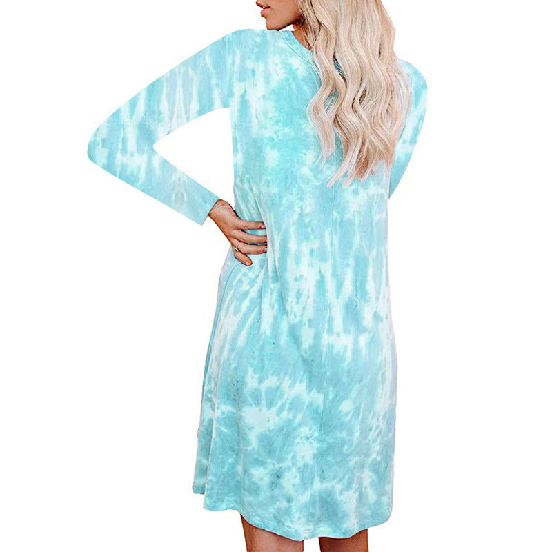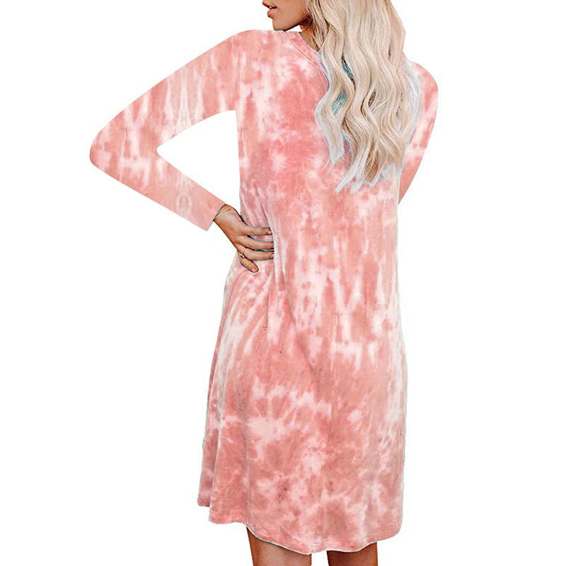Lounge in stijl en comfortabel in deze retro -stropdasverf met lange mouwen jurk met lange mouwen. Het loszittende ontwerp biedt ruimte voor beweging zonder beperking terwijl je je figuur nog steeds flatteert in het kleurrijke stof met een patroon.