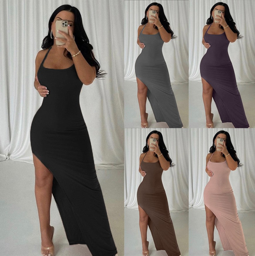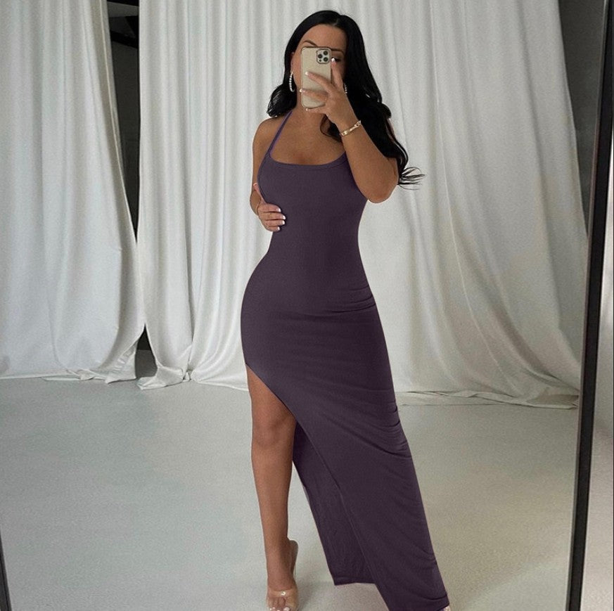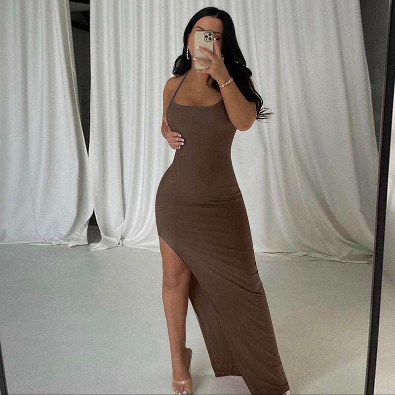 Stijlvolle vorm past maxi -jurk met lage halslijn