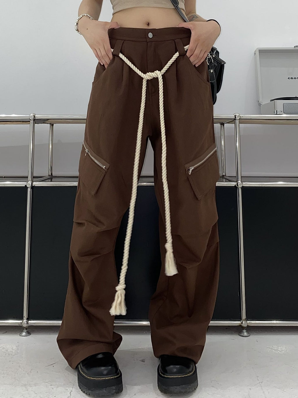 Druk je persoonlijkheid uit terwijl je je comfortabel blijft met de zware broek met hoge taille met oversized trekkingen die naar de enkels zijn voor een unieke uitstraling.