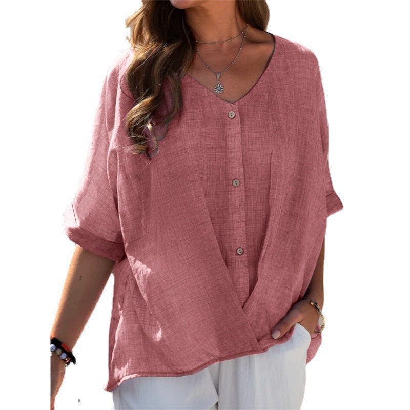 Feel cozy and cute as the weather starts to cool down in this Loose Fitting Three Quarter Sleeved Button Down Top. Made from lighweight material, this top remains breathable and comfortable in any weather.