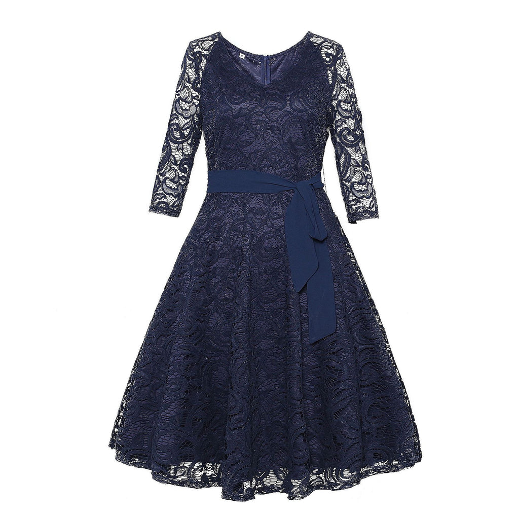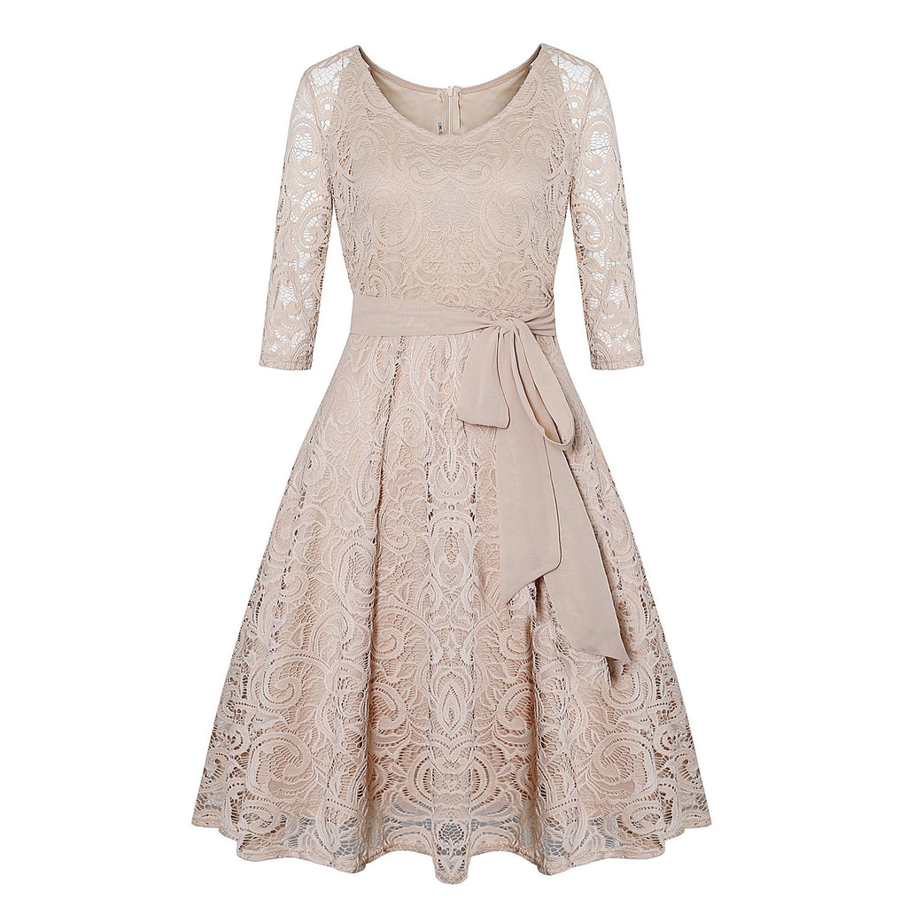 Perfect for a semi-formal night out, the Lace Illusion features three-quarter-length lace sleeves and an A-line skirt.