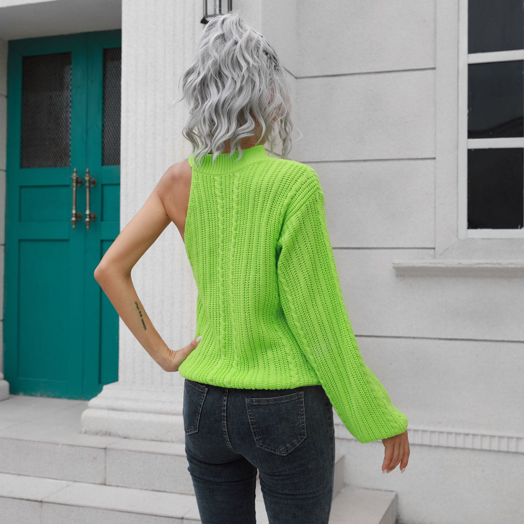 Single Sleeve Mock Neck Sweater with Knitted Details
