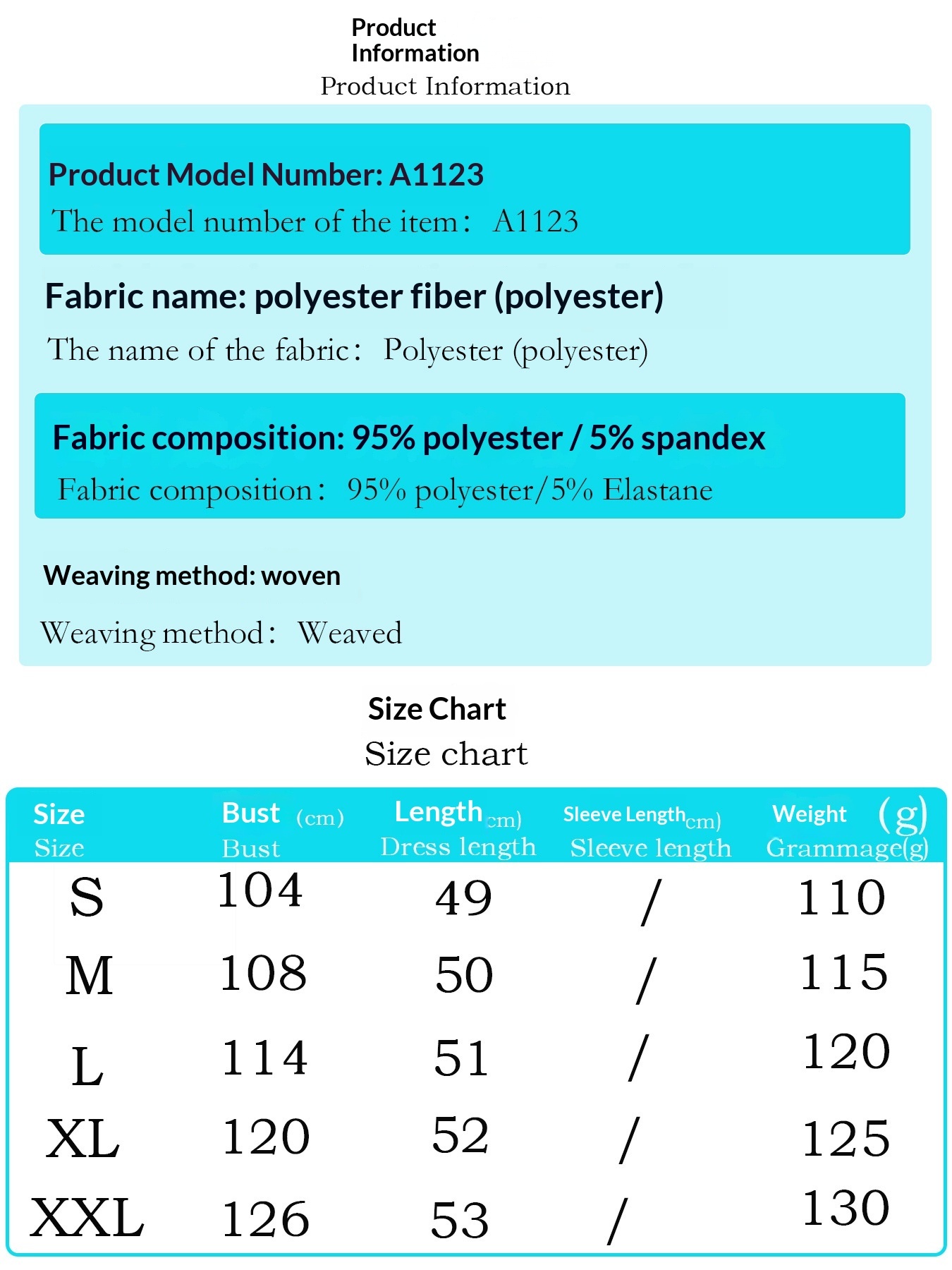 Sizes: S, M, L, XL, XXL
