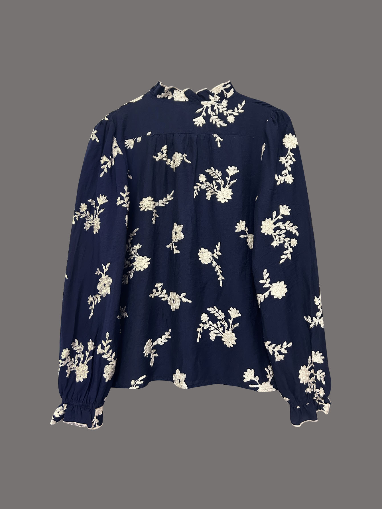 Women's Long-sleeved Western-style Chiffon Blouse With Embroidery